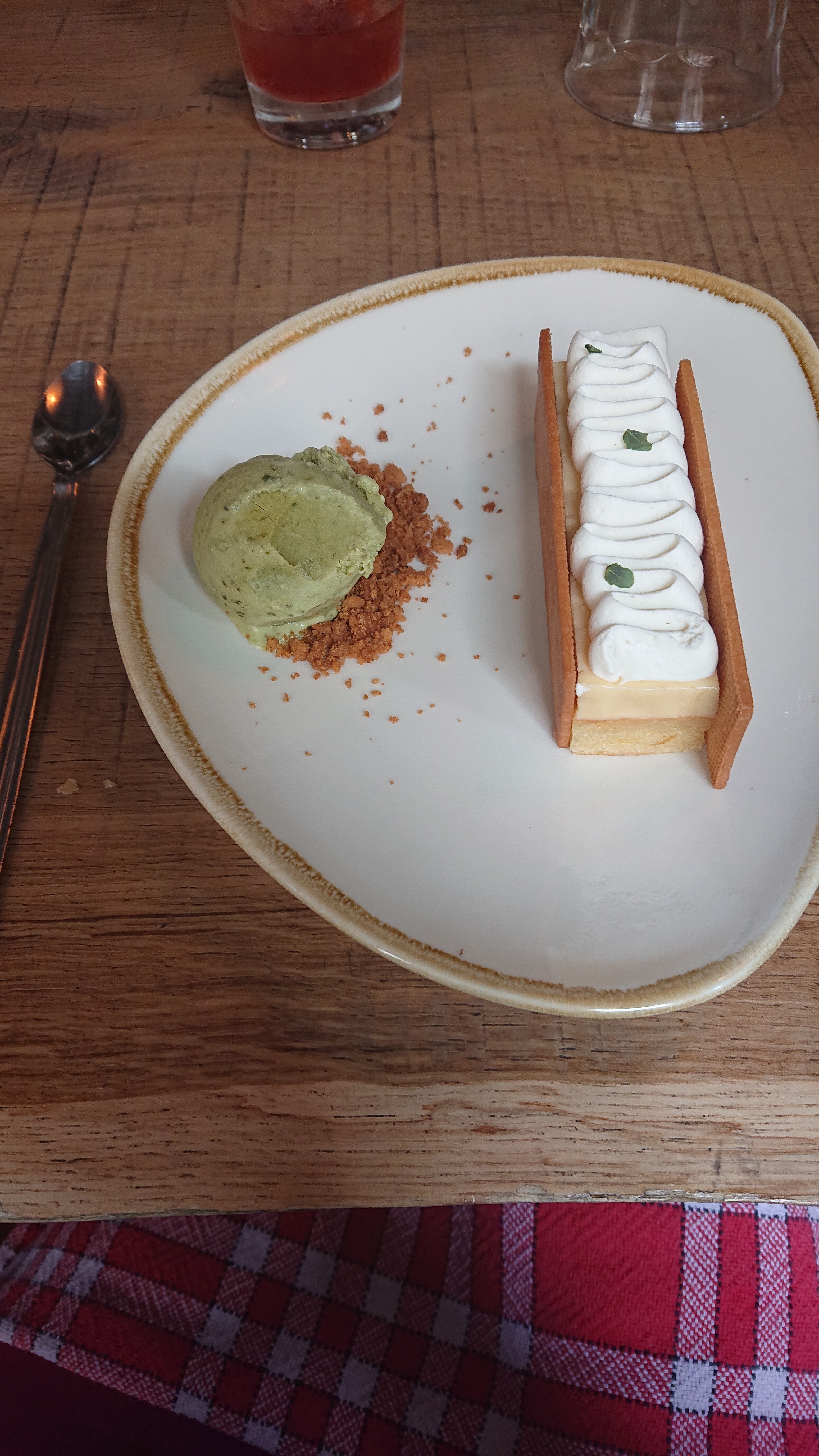 Un beau restaurant ou de gentils personnes servent et prépare de très bons repas. Le dessert à la pistache nommé intelligemment Pistache se présente en une palette de textures et de couleurs de la saveur pistache.. Un délice..