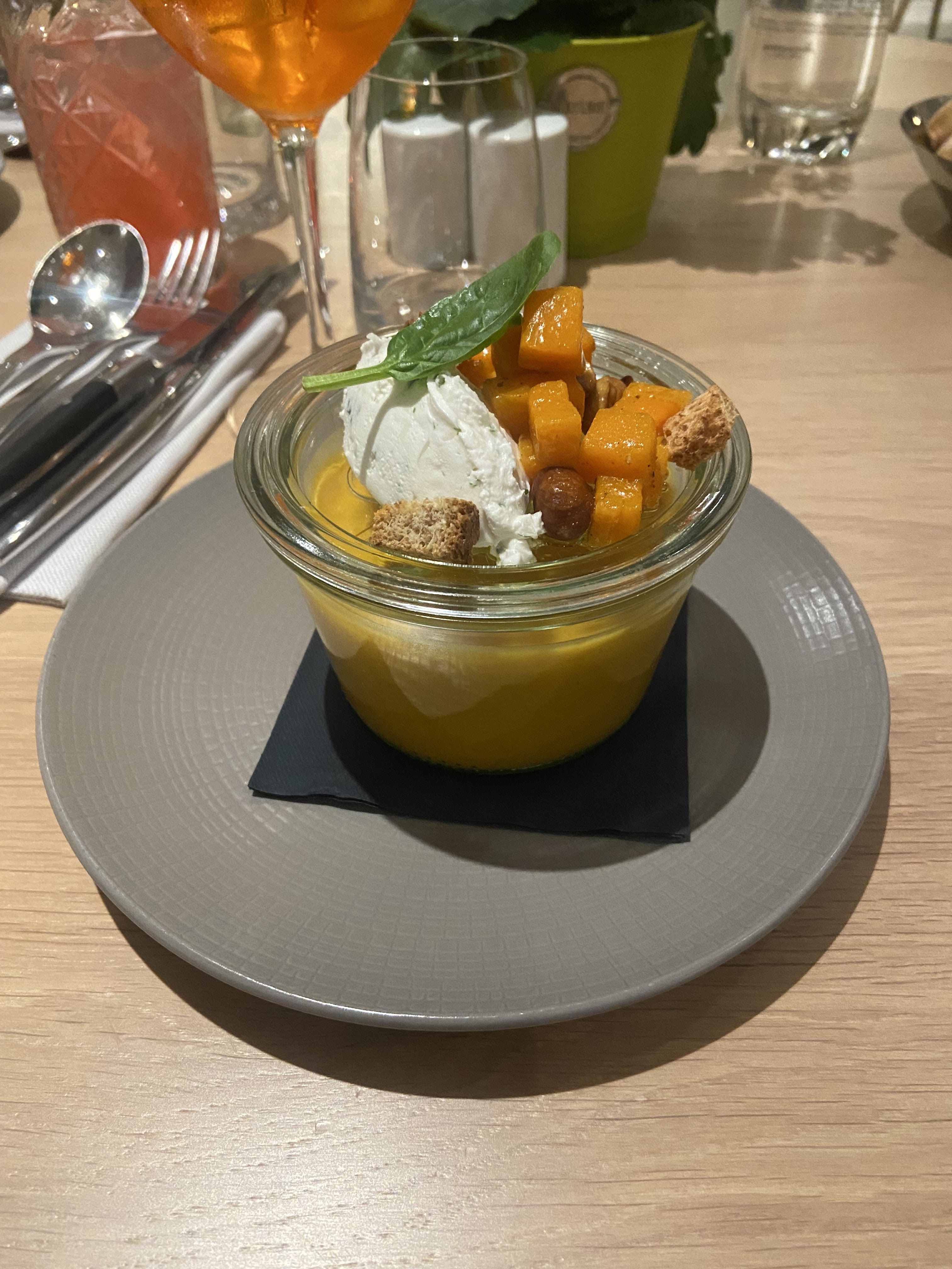 Nous sommes arrivés à 10 personnes, un mercredi soir donc restaurant assez calme. Il y a eu 1 heure entre notre arrivée et la. Prise de commande pour l apéritif !!!! Et 30/40 mn de préparation !! Pas de carafe d eau sur la table... On s est même demandé ou étaient les serveurs !! Ensuite pr le menu du jour ce n est pas foufou (à part le crémeux de butternut), les nouilles soba déposées en masse dans l assiette aglutinées les une aux autres... C était plus bourratif q autre chose, un petit bouillon avec serait le bienvenue ! Seule la déco est sympa !