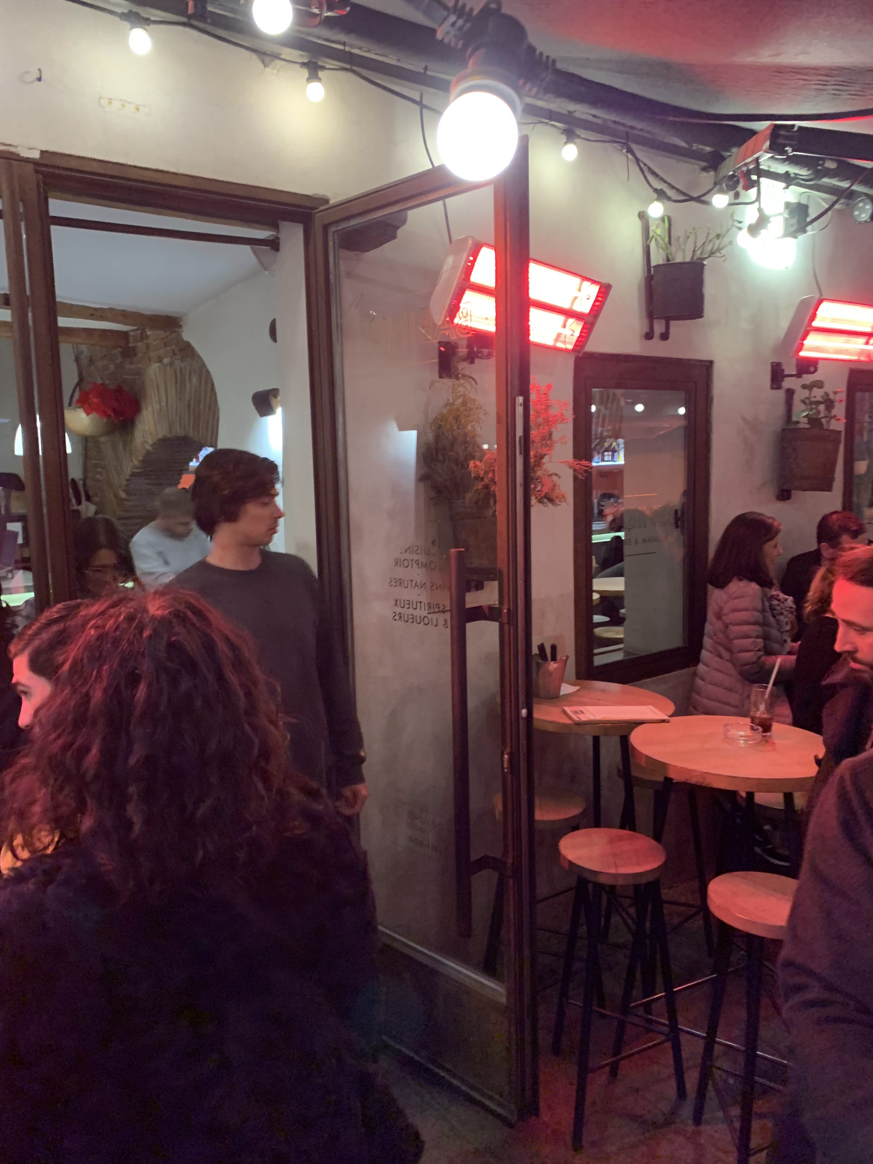 Quel moment ! Installé dehors mais il faisait froid, on nous met au comptoir près des serveurs et bar man Un patron tranquile sans stress sur accueillant, des serveurs et barmans au petits oignons qui ont même offert des verres pour s excuser du petit espace qu'on avait pour manger ( largement suffisant ) Une cuisine vraiment superbe ! Merci pour ce moment, c'est agréable de pouvoir passer un moment au restaurant ou tout le monde est sans pression et de bonne humeur. Ne changez rien !