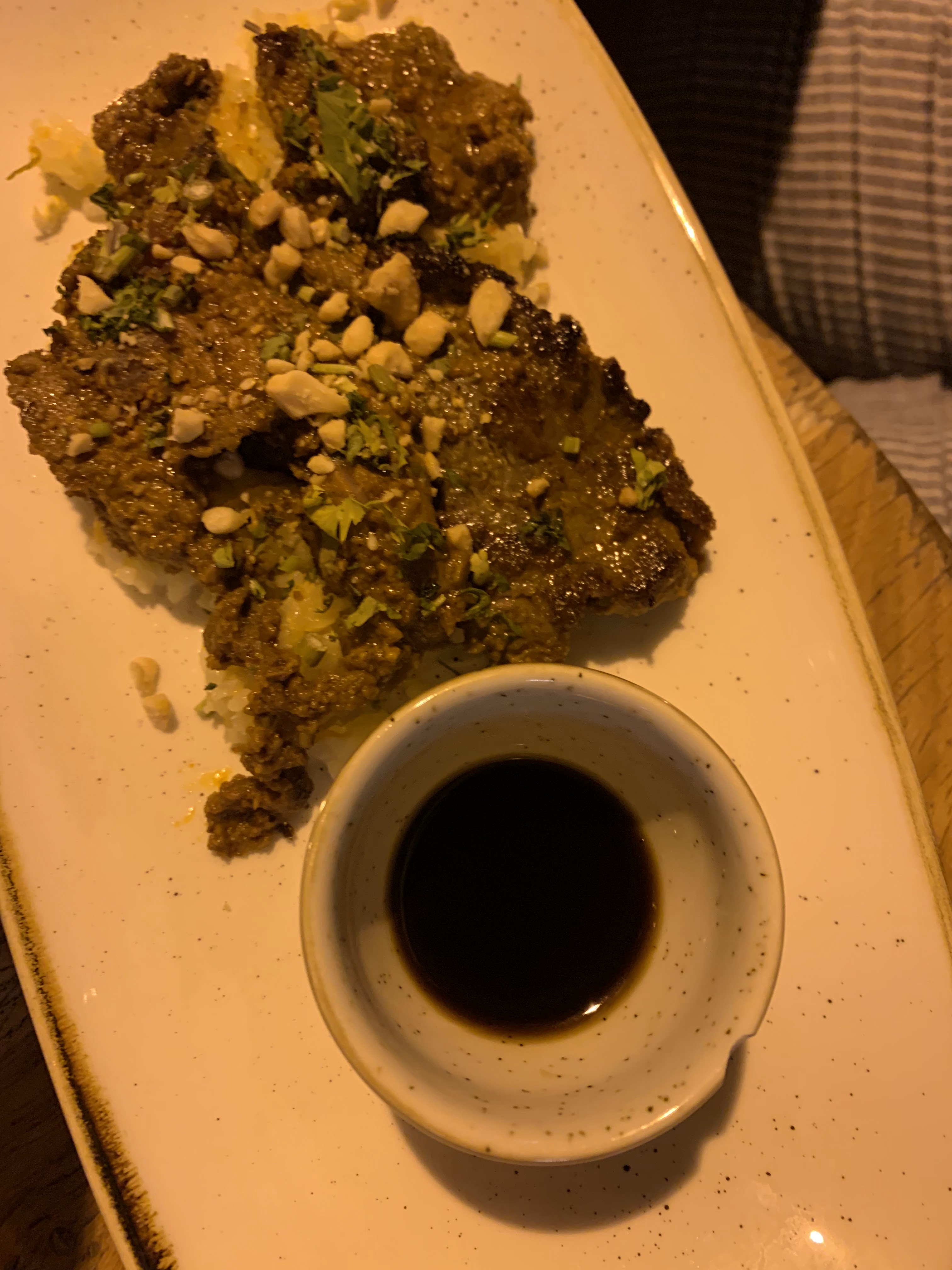 Nous avons commandé des aubergines, du tartare et des artichauts. Très riche et original. Les gens qui servent sont sympathiques et attentionnés, on voit qu'ils s'amusent à travailler et c'est très agréable. Très bons vins et bonne musique. Très recommandable!