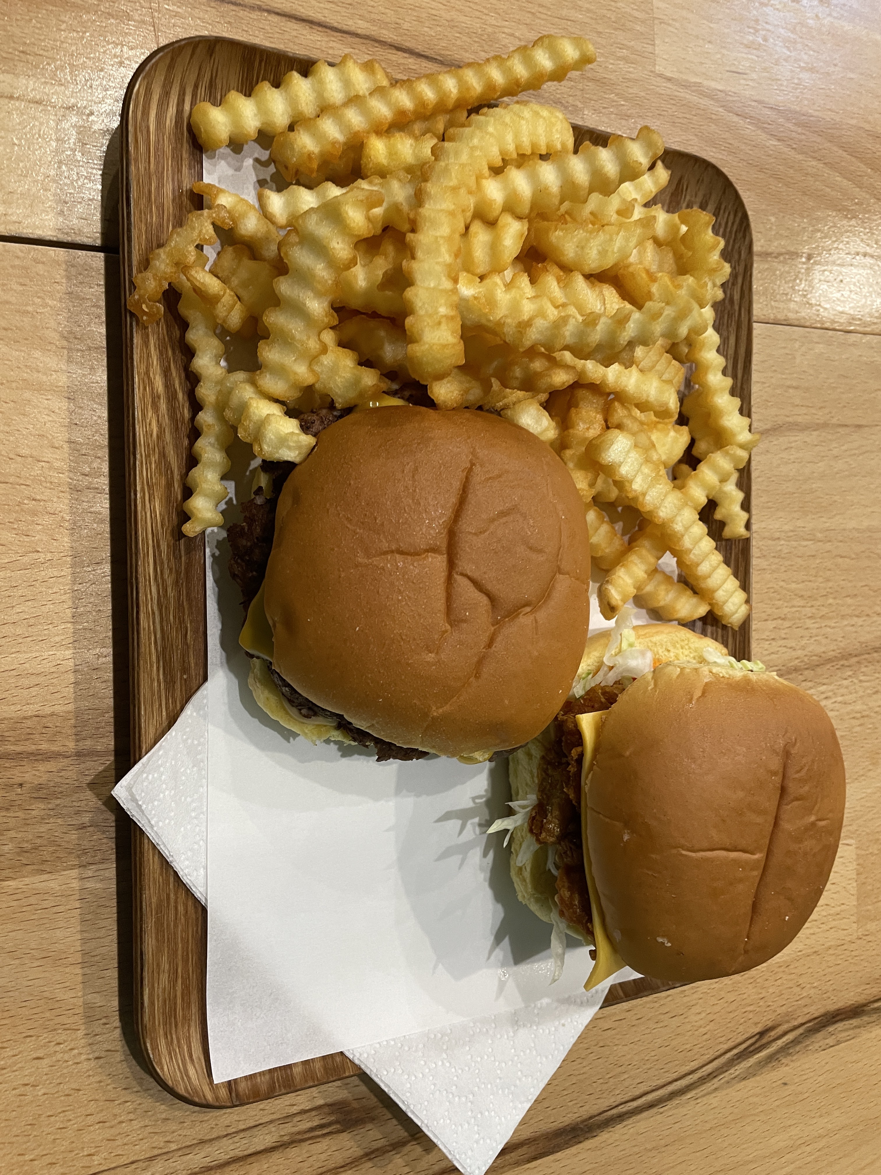Ce snack qui a l'air tout récent propose vraiment un bon rapport qualité-prix, les burgers sont simple mais très efficaces, les portions de frites généreuses. Le triple cheese (façon smashed burger) était rempli de viande et fromage... terrible.... La prochaine fois j'essaierai la version avec cinq (5!!!) steack pour encore plus de fromage !!!!