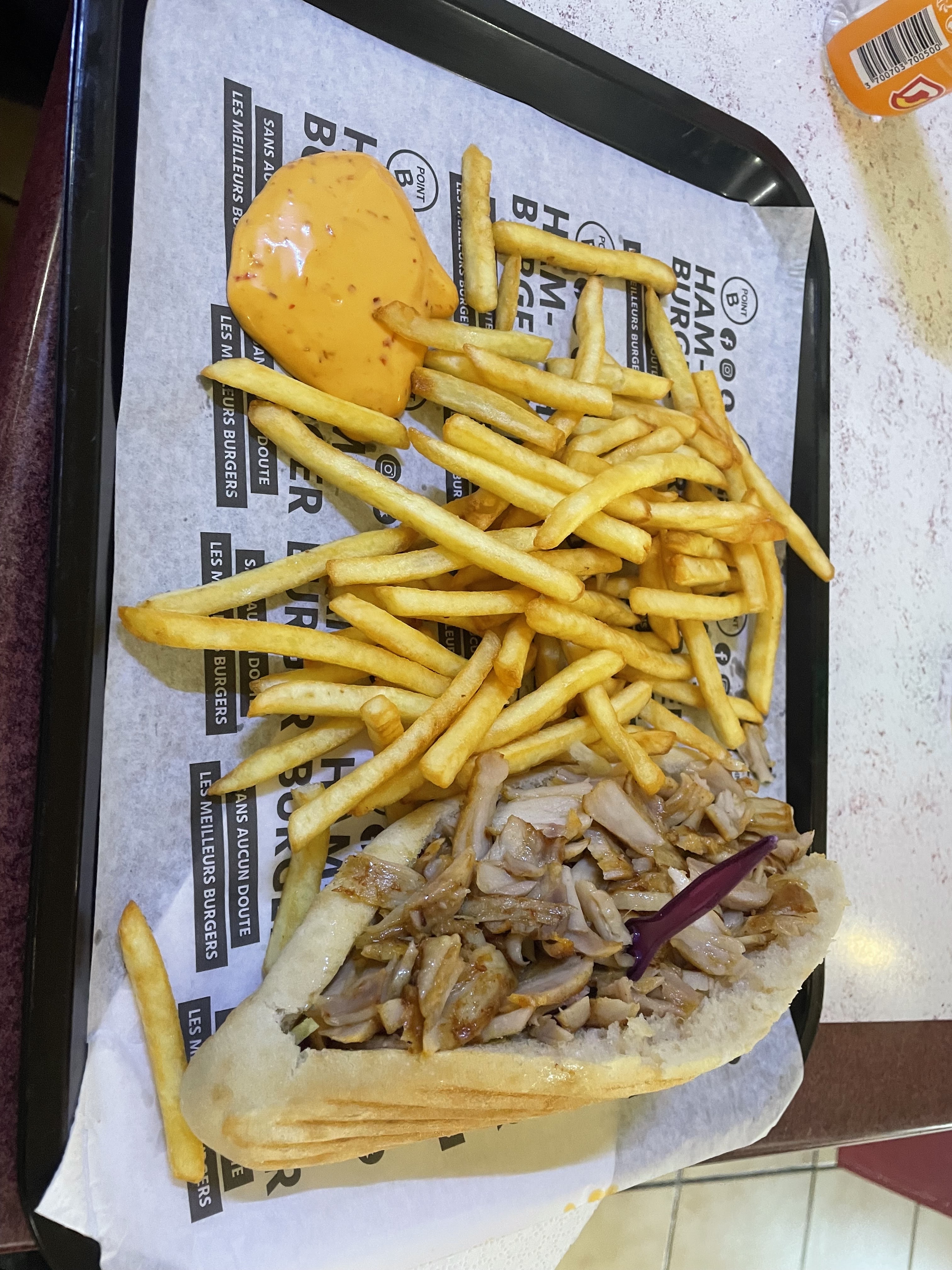 C’était une belle découverte dans la ville de Péronne . Possibilité de stationner facilement dans les environs. Situé en pleine ville et pas caché. Tous les mêmes menus , Burgers ou kebab! Service rapide . Cuisson moyenne mais c’était bien. Possibilité de manger en groupe, en solo.
