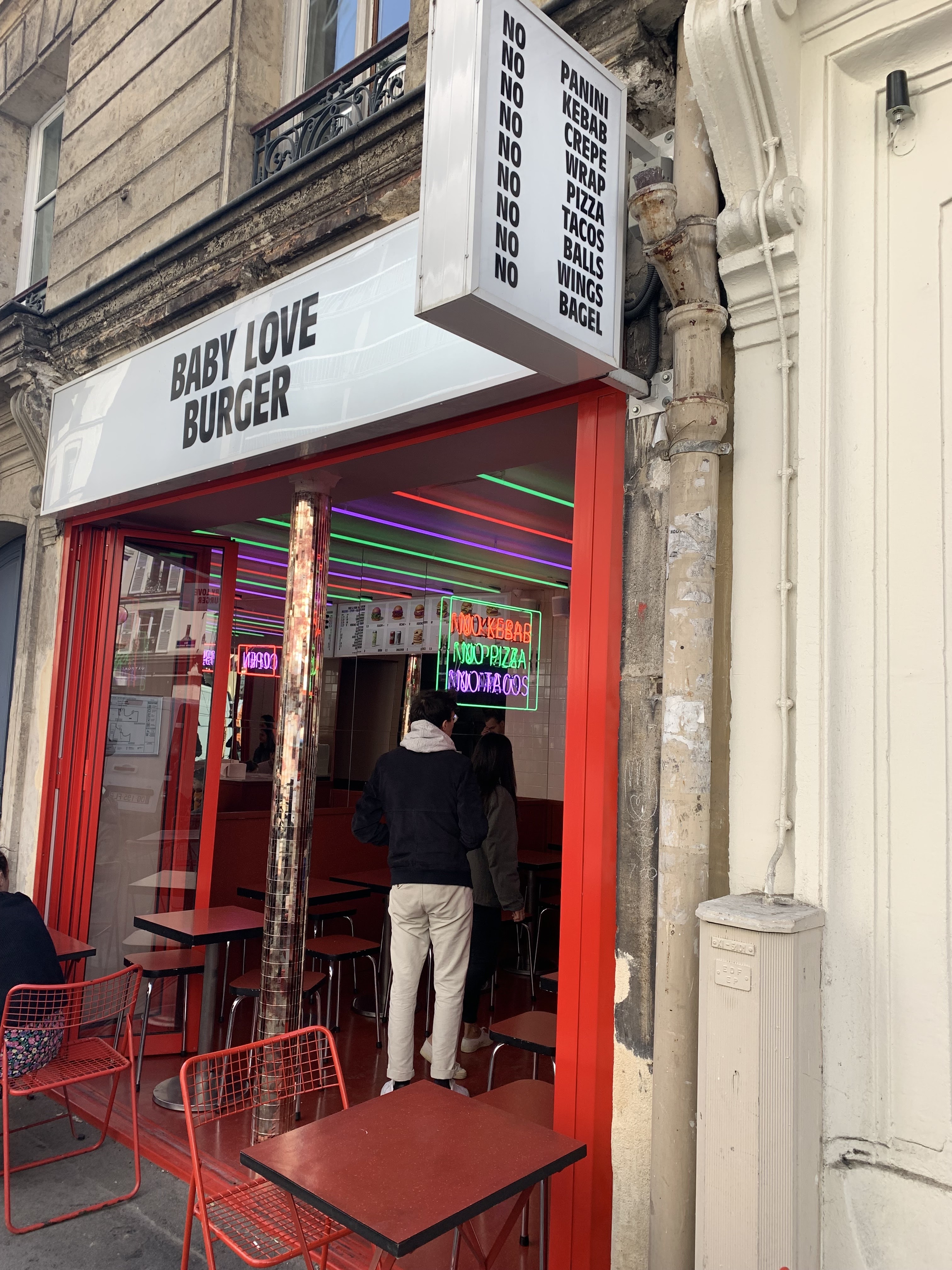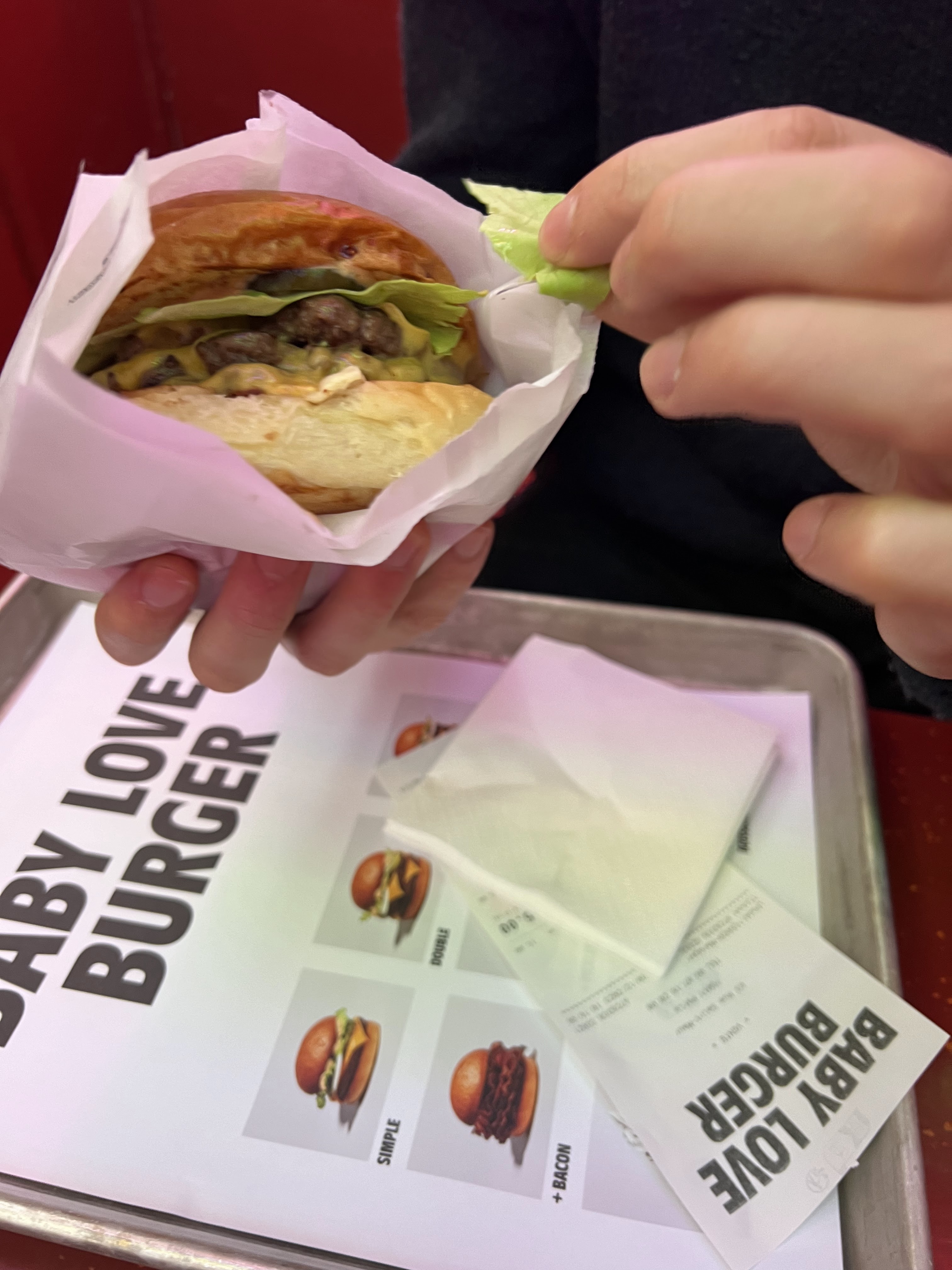 Alors autant j ai rien a dire sur le service impeccable. La deco sympa,rien a redire non plus. Mais apres, oui le pain est moelleux tres sympa, oui les sauces sont pas mal, oui oui les frites sont maison mais pas magiques pour autant. Et du coup, et bien pour moi, a mon seul gout evidemment , il reste la viande. L essence du burger avec le pain, c est la viande et sans etre mauvaise,c est pas foufou. C est là où cela fait limite mal. Le bonbon par exemple avec sa foodista limite au bord de l orgasme te vend le burger de BLB comme la revelation food de l annee. Alors qu à mon seul gout, on serait plus sur du burger king haut de gamme en terme de gout ( ni mauvais mais pas si bon ) que sur du high level made in OBU ou Papo qui t envoie direct dans les etoiles au premier croc. Oui,clairement, ca fait le buzz, on vend du reve voire trop a ce stade mais au final, rien de si dingo ou de si emballant. Si baby love burger, ce serait, comme indiqué dans l enoncé, plus pour les enfants mais pas trop pour les grands. Sorry , l oeil du tigre gourmand n a pas vrillé sur ce coup là et pourtant, j aurais bien aimé etre baby moi aussi ;).