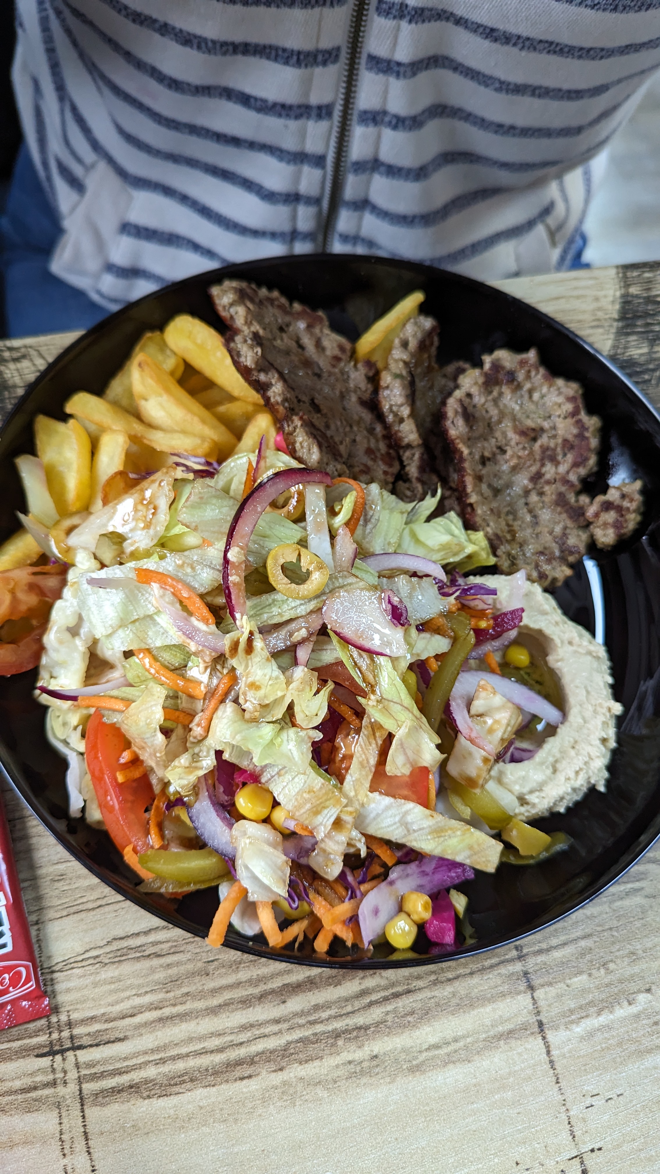 Plats simples et très bons , salade fraîche , enfin des falafels pas secs et délicieux. Taboulé, shawarma,assiettes tout est bon . Menu enfant disponible avec un burger et capri Sun. L'ambiance est bonne et sympathique . Allez y sans hésitez pour goûter ce bon street food d'inspiration Libanaise