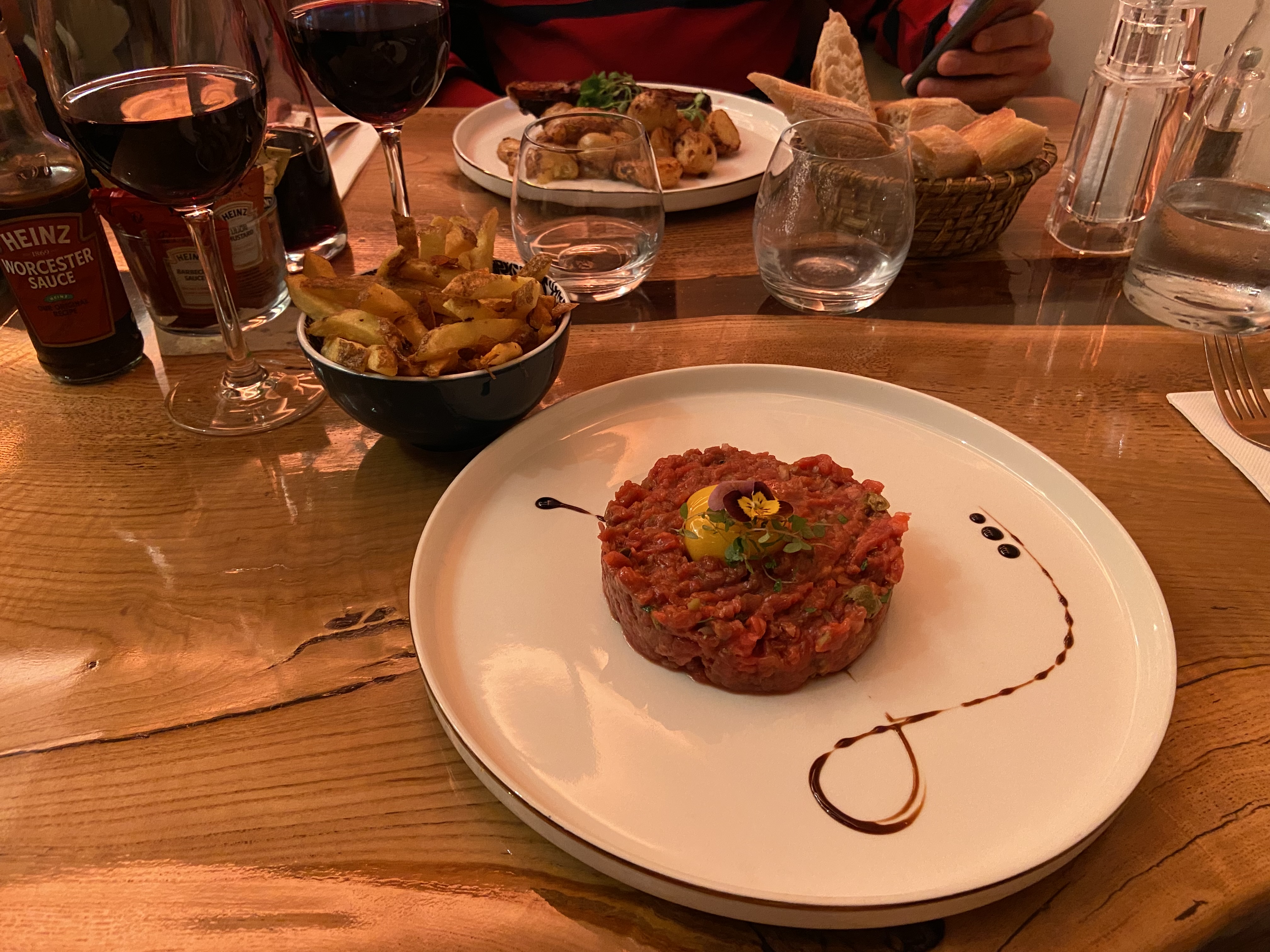 Très bon accueil. Endroit agréable. Nous avons pris des pâtes à la crème de truffe et un steak tartare. Nous nous sommes régalés. Seul bémol : la quantité ! Servir des pâtes dans une assiette destinée au dessert c est très limite...surtout pour 16€.la portion était ridicule. Donc un peu déçus. Plat à éviter si vous avez faim.
