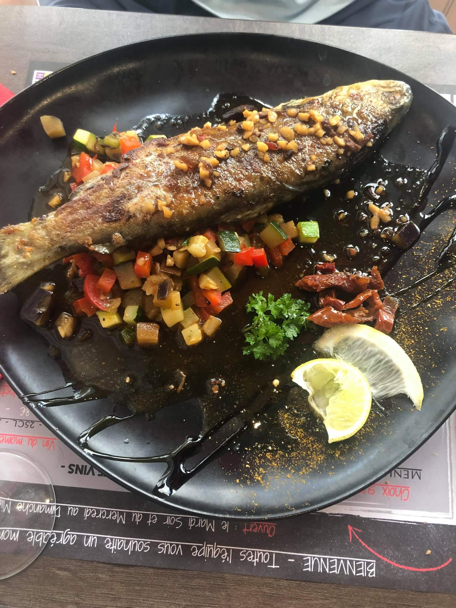 Très bon repas voir excellent si l’entré et le plat principal aurait été plus chaud mais super belle assiette, je retires une étoile pour la grosse déception du mojito ou le rhum étais inexistant et quantité insuffisante dans l assiette
