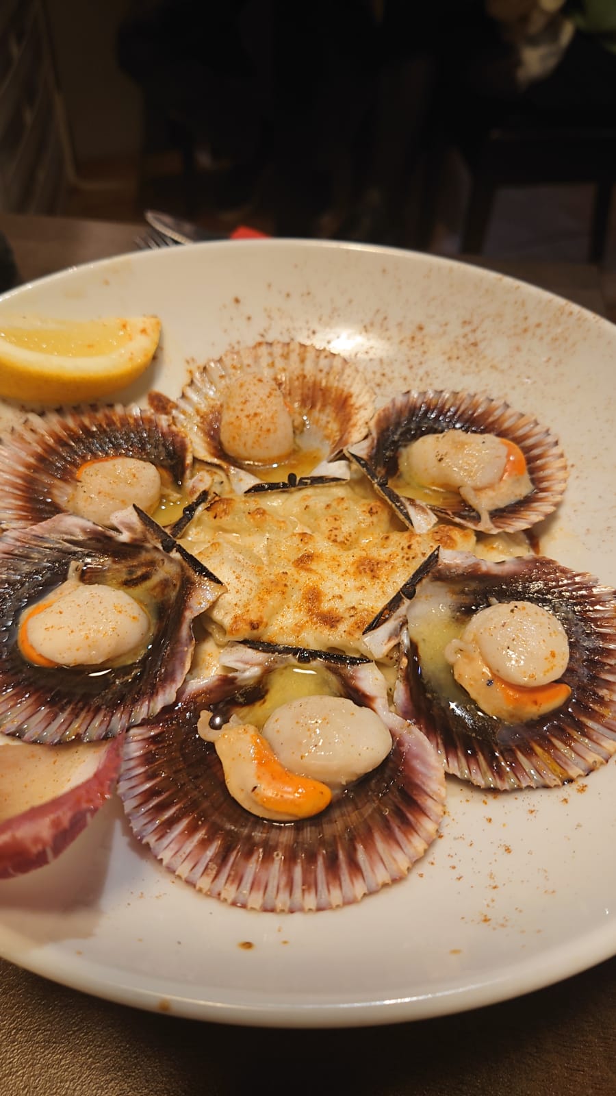 Nous avions réservé pour 15 personnes et avons été très bien reçus. Accueil très sympathique, plats d'une grande qualité, servis chaud en même temps.. quand on dit, coquilles saint jacques snackées, elle le sont vraiment,très fraîches et chaude a l'intérieur, gambas flambées extra, petits légumes frais et un baba.. a tomber. Merci à toute cette famille qui a fait de notre soirée une fête.