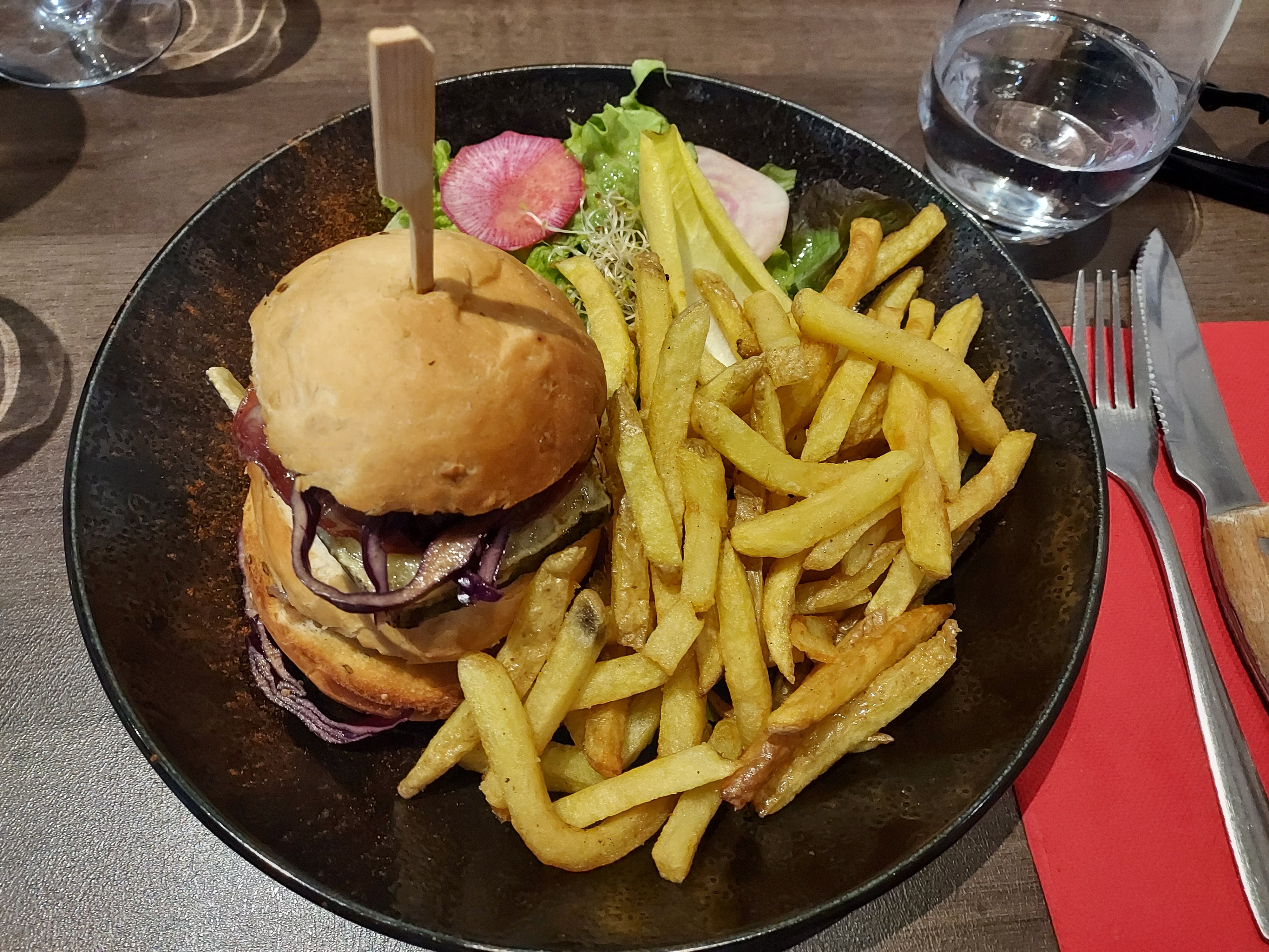 Frites grasses et de mauvaises qualité, mal cuites alors que c est la base de tous leurs plats, steak du burger proposé avec choix de cuisson et overcuit, très décevant, 1h après il nous reste que le goût des frites ove rgrasses dans la la bouche ...