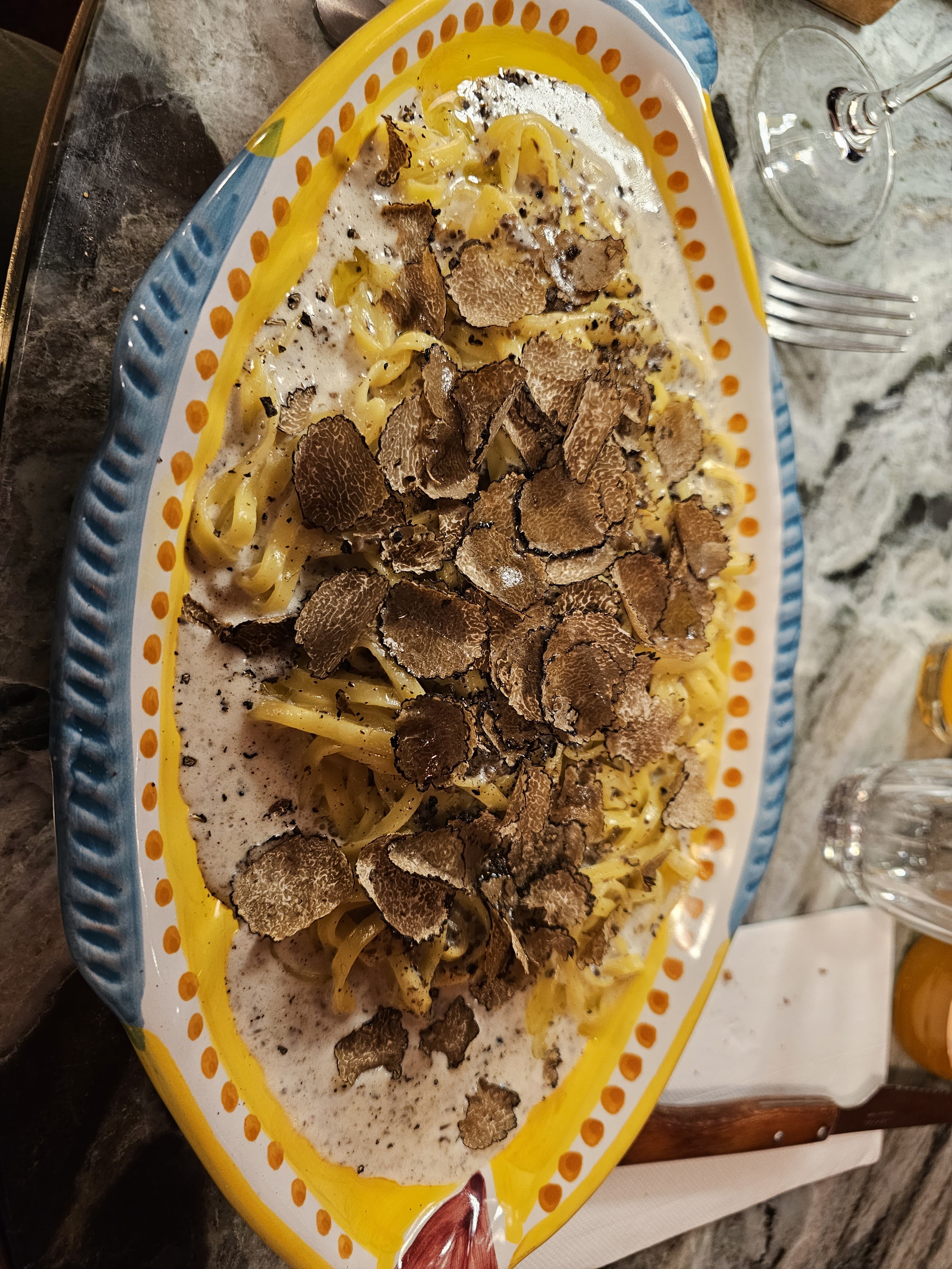 Très belle déco signée CAJ pâtes aux truffes un régal pour mes papilles et tiramisu 🤪 très belle soirée ah j’allais oublier le spritz 👍 bien dosé