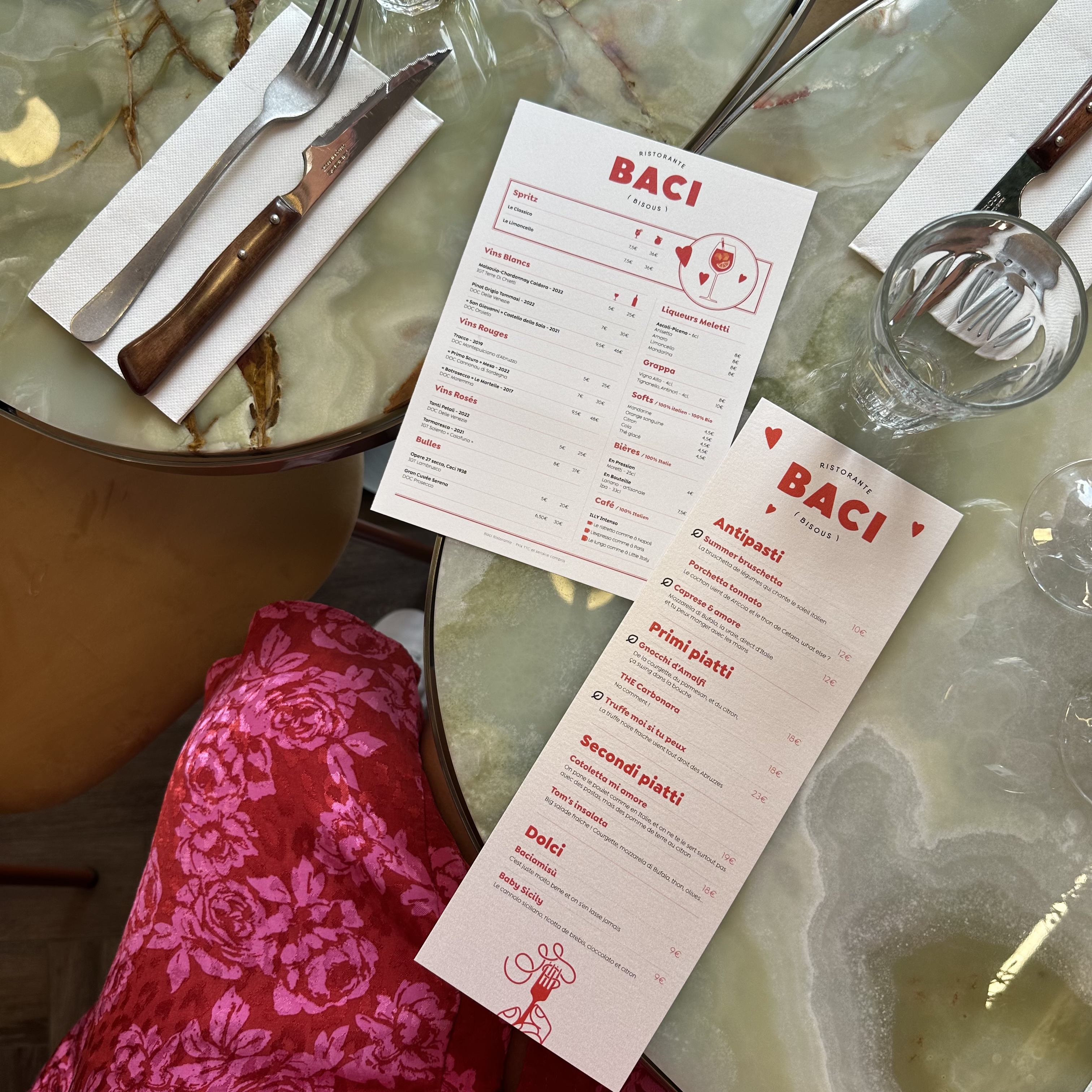 Pour avoir vécu plusieurs années en Italie, je dois dire que je viens de voyager dans ce pays que j’aime tant en allant déjeuner chez BACI 😊 Tout d’abord, un Spritz classico, je me suis revue 15ans plus tôt sur les toits-terrasses milanais 🍹 Ensuite, je me suis fait « truffer » par un delicieux plat de pâtes 😋 Et pour finir, le véritable tiramisu, directement servi à partir d’un grand plat, comme chez la Mamma 🥰 Un décor enchanteur, en mode alcôve douce et chaleureuse. Le tout servi avec le sourire, l’accent italien, non vraiment je viens de me faire une belle madeleine de Proust! Quel plaisir de revivre ces émotions !! Tout simplement merci 🙏