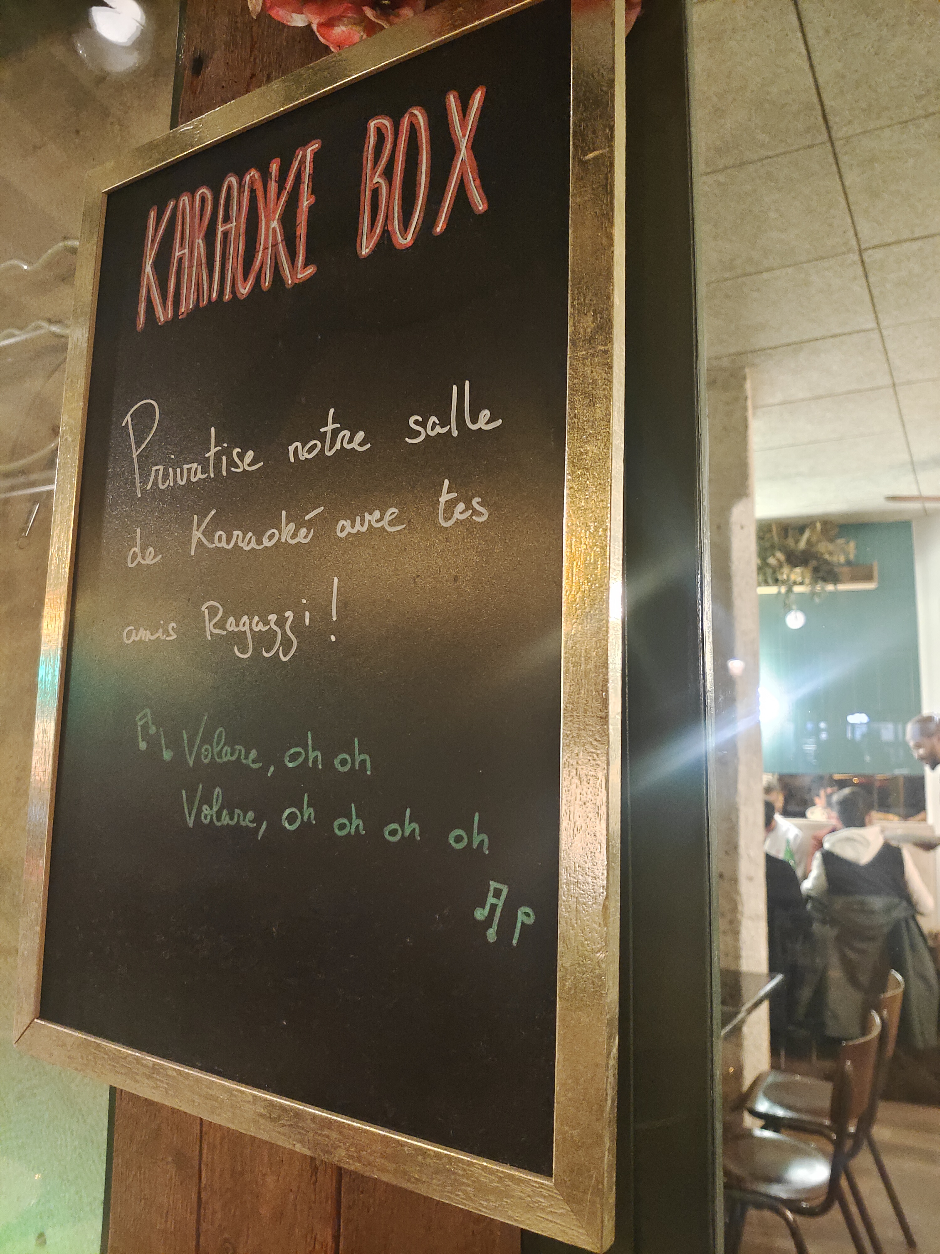 Déçue : on réserve pour une table de 3, on est à l’heure (même à l’avance) pour découvrir qu’on a une table pourrie exposée au soleil alors qu’il fait une chaleur à mourir dehors. Pas de possibilité de changer de table, juste l’intérieur où il n’y a pas plus d’air frais. J’ai été mieux reçue à Pizza Time à St Denis. En ce qui concerne le karaoke pas de fonctionnalité de recherche ni de playlist, résultat on perd un temps fou à chercher les chansons. On reviendra plus.