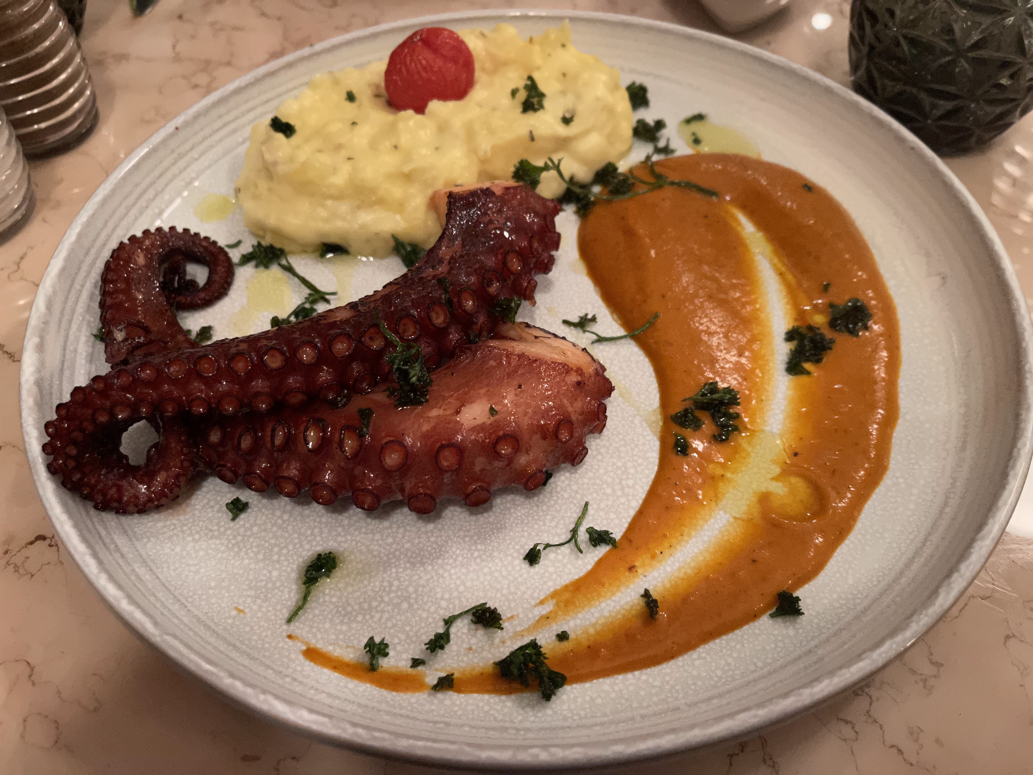 Dommage le poulpe était à l'unanimité trop dur et caoutchouteux. La glace à la pistache, un peu fade.