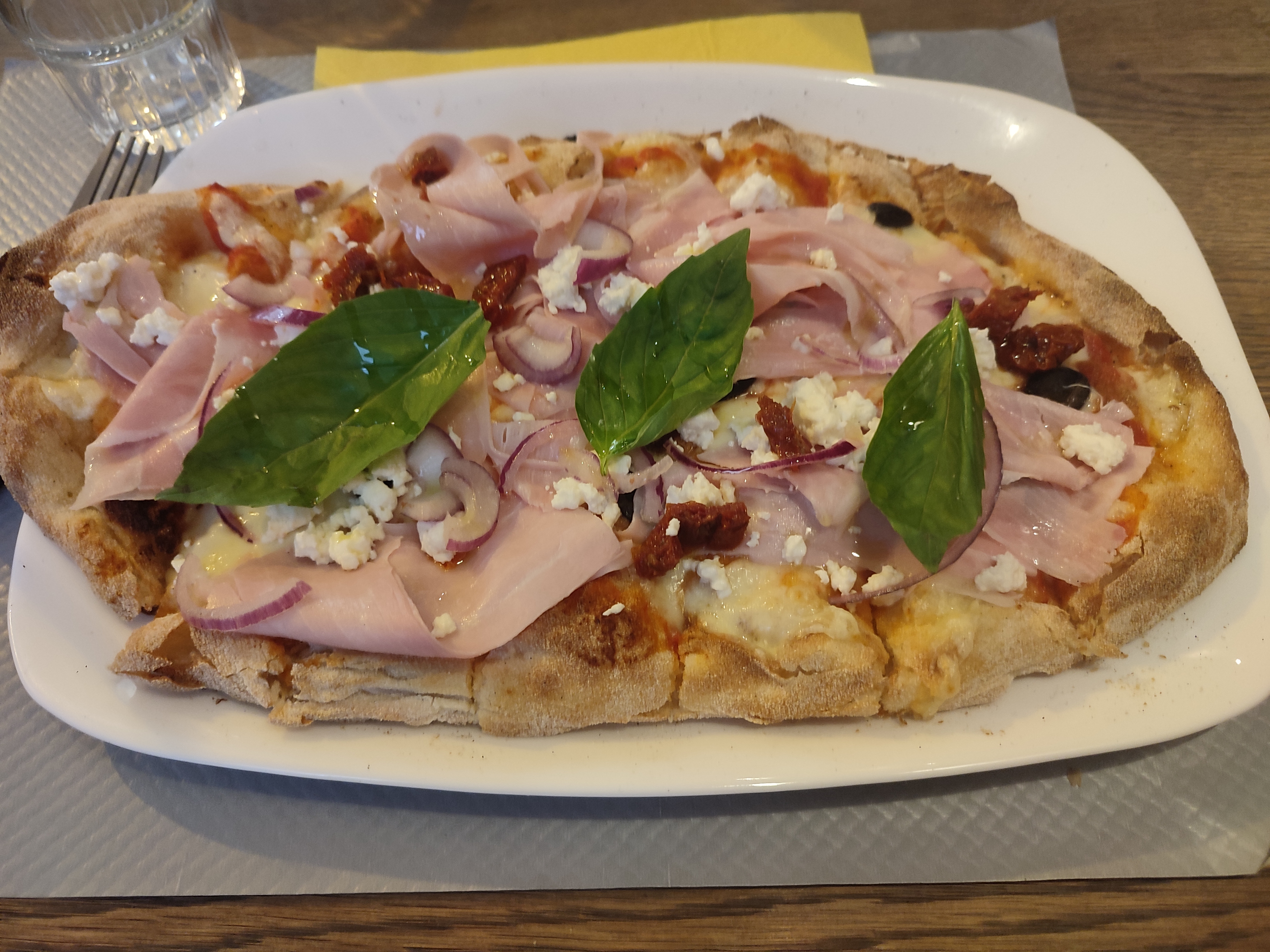 Très bonne pizza (pensa), bon vin rouge et serveurs sympathiques !