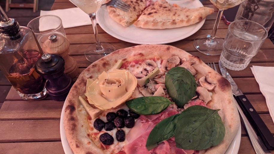 Bon. J’avoue on a réservé pour 21h40 via la fourchette. On est arrivés à 2 avec 1h de retard mais accueil compréhensif et bonne cuisine Une bonne calzone ( sans champignons mais avec 1 jaune d’œuf ) Sinon pizzas délicieuses Je recommande sans hésiter