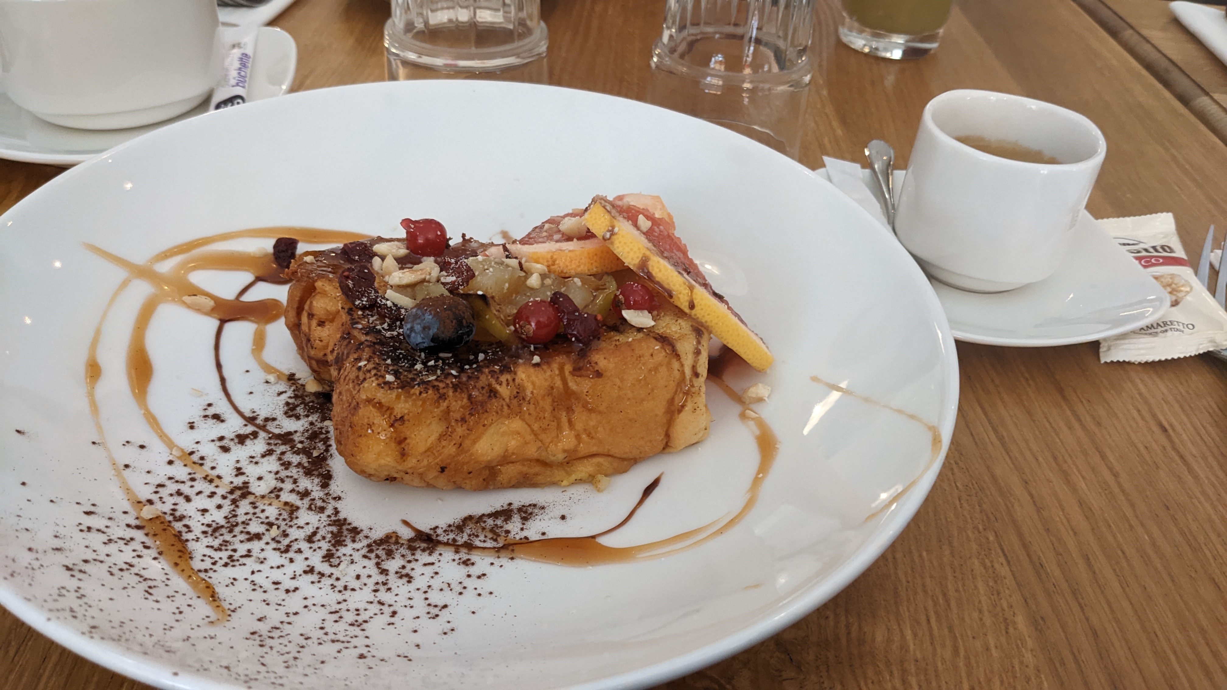 Brunch très agréable et jus frais super bon! ☺️ Les œufs brouillés auraient pu être plus copieux; la brioche perdue était irréprochable avec un caramel vraiment délicieux.