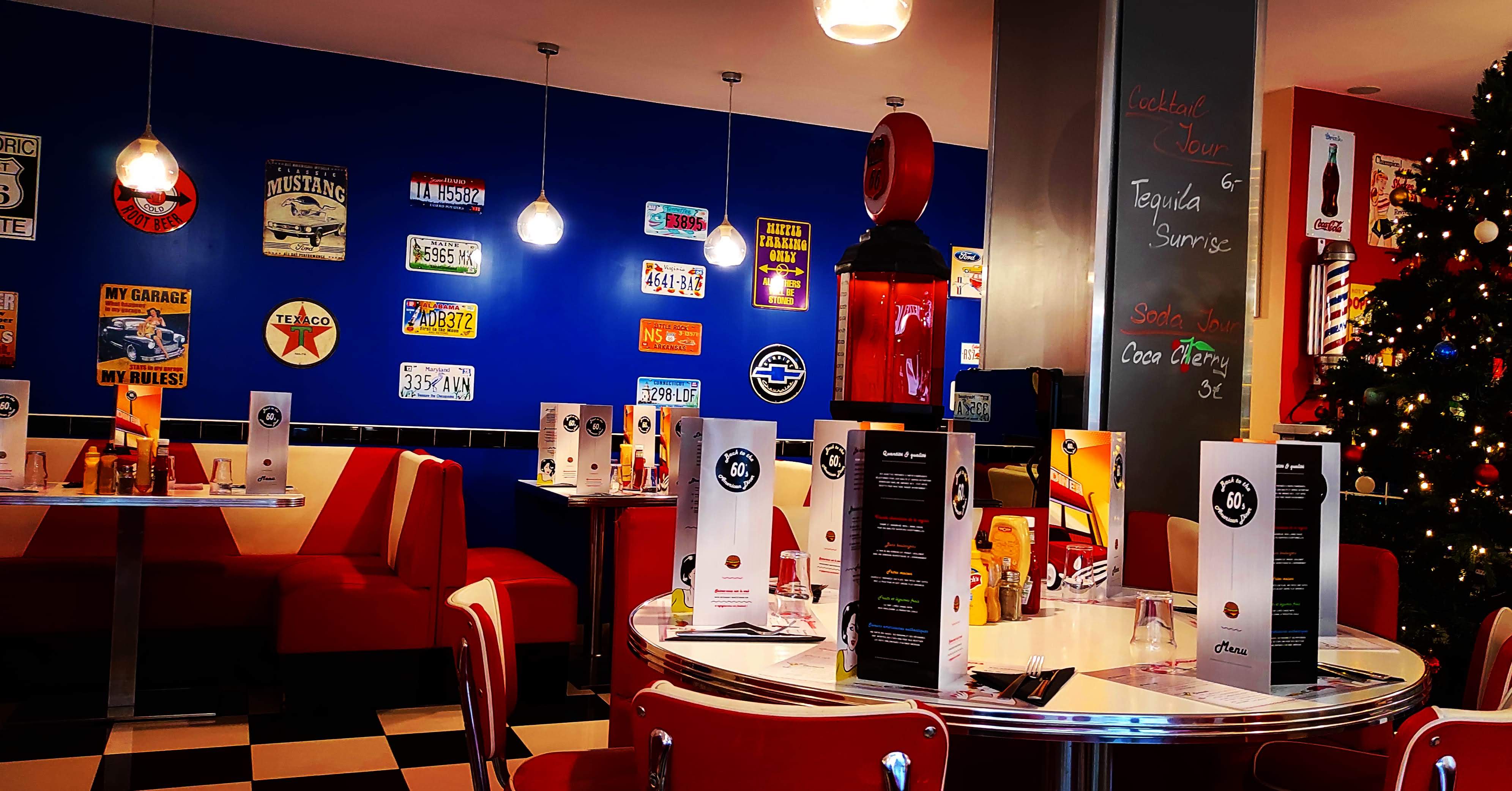 ❝ Burgers, milk-shakes et spécialités US typiques dans un décor coloré de diner américain des années 60. ❞