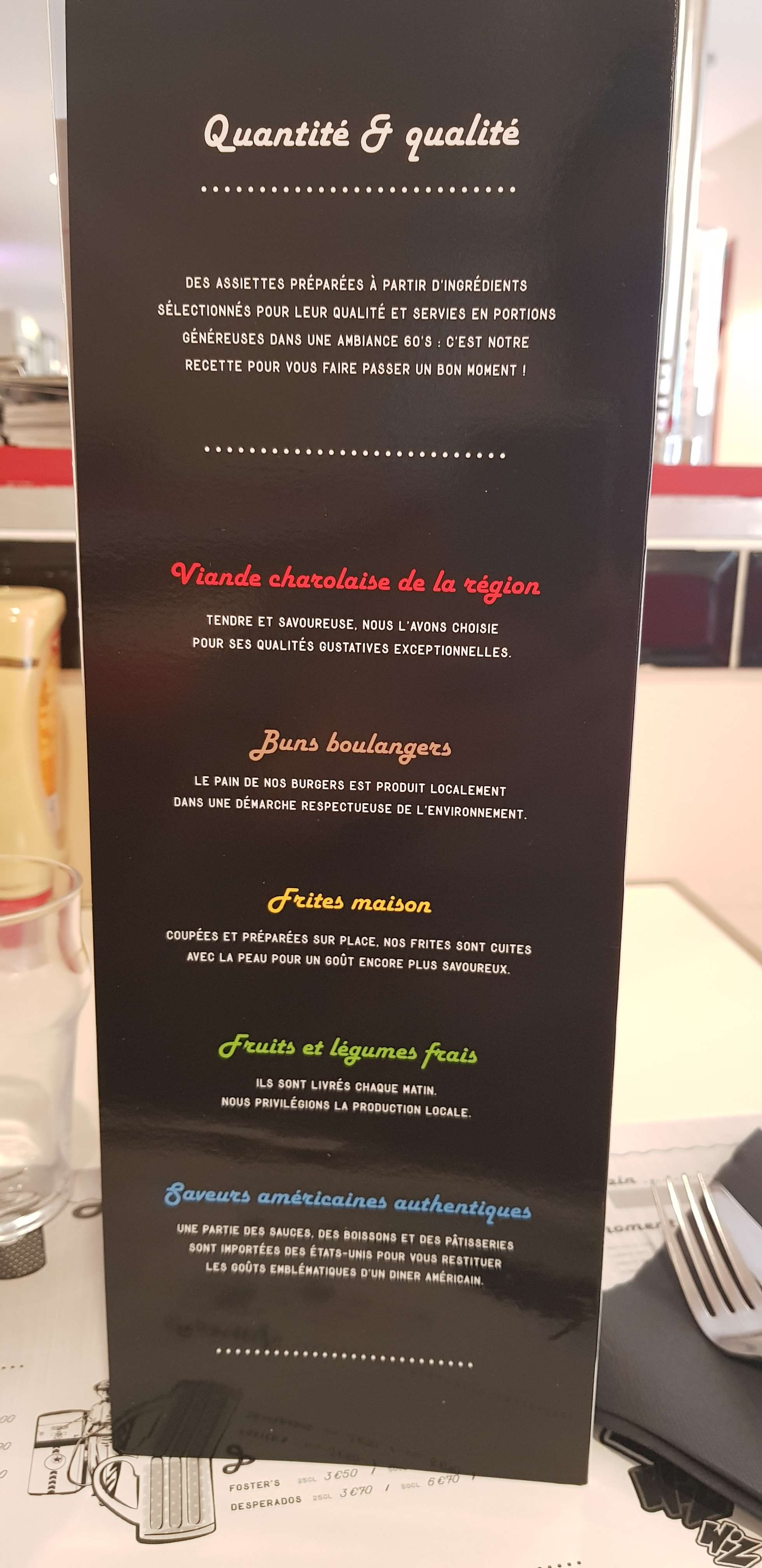 Accueil chaleureux, produits de qualité pour un Burger digne de ce nom. N'hésitez plus back to the 60's