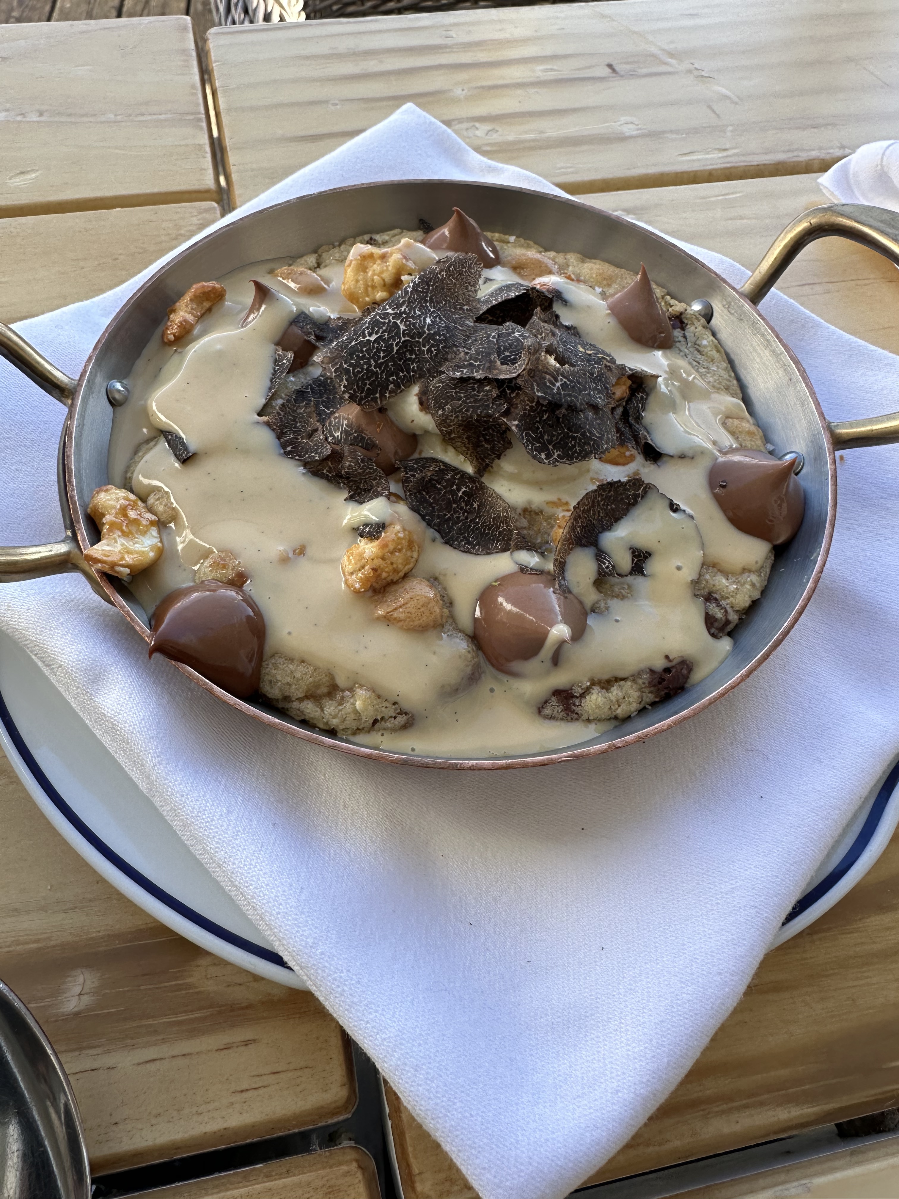 Excellent mélange de nourriture, de vue, d'ambiance, de soleil et de bonne musique. Facile d'accès via remontée Chenus pour les skieurs et les non skieurs. La nourriture arrive rapidement et le prix est raisonnable pour ce que vous recevez. Le premier service est un peu plus silencieux que le second. Les desserts sont excellents mais il faudra compter 15 à 20 minutes pour arriver à table. Deux suggestions. Assurez-vous d'apporter des lunettes de soleil et de la crème car le soleil brille fort et le restaurant devrait proposer des chapeaux pour le soleil au lieu de vous adresser à la boutique pour en acheter un.