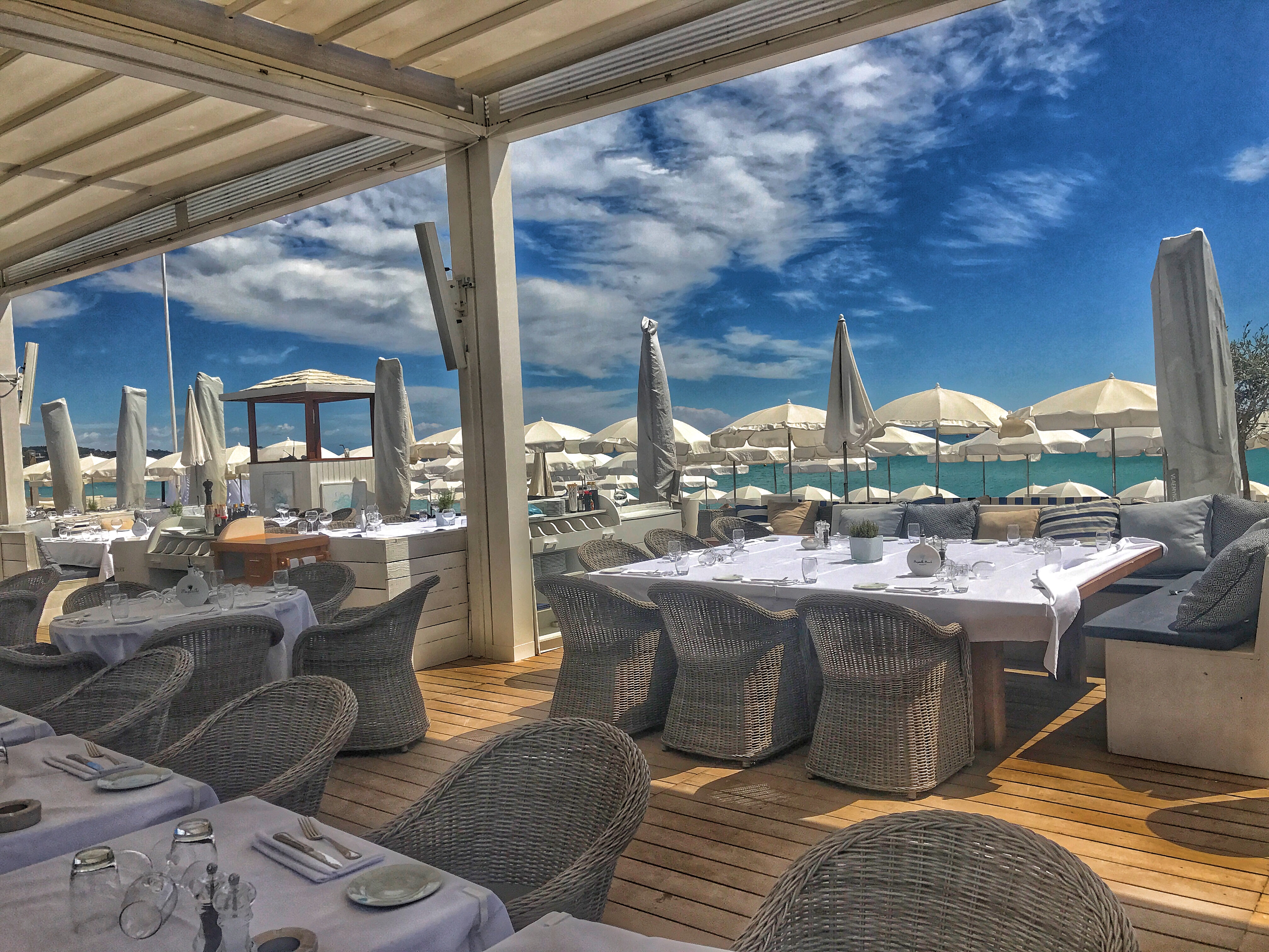Cuisine , musique ( un peut trop fort minus une 🌟) décor, service et surtout la plage de Pampelonne