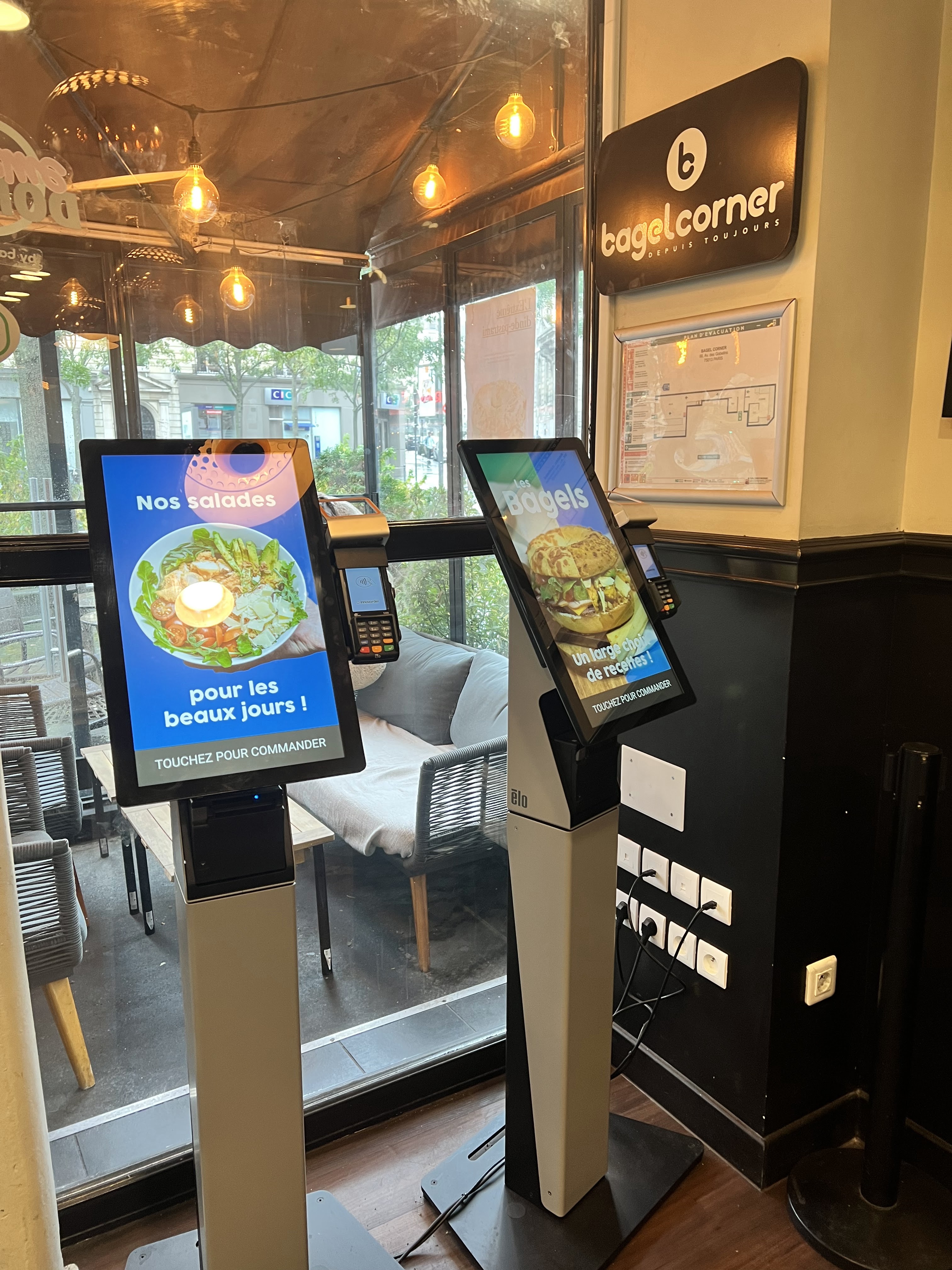 bornes libre-service efficaces pour les commandes et bonne option de bagels végétaliens