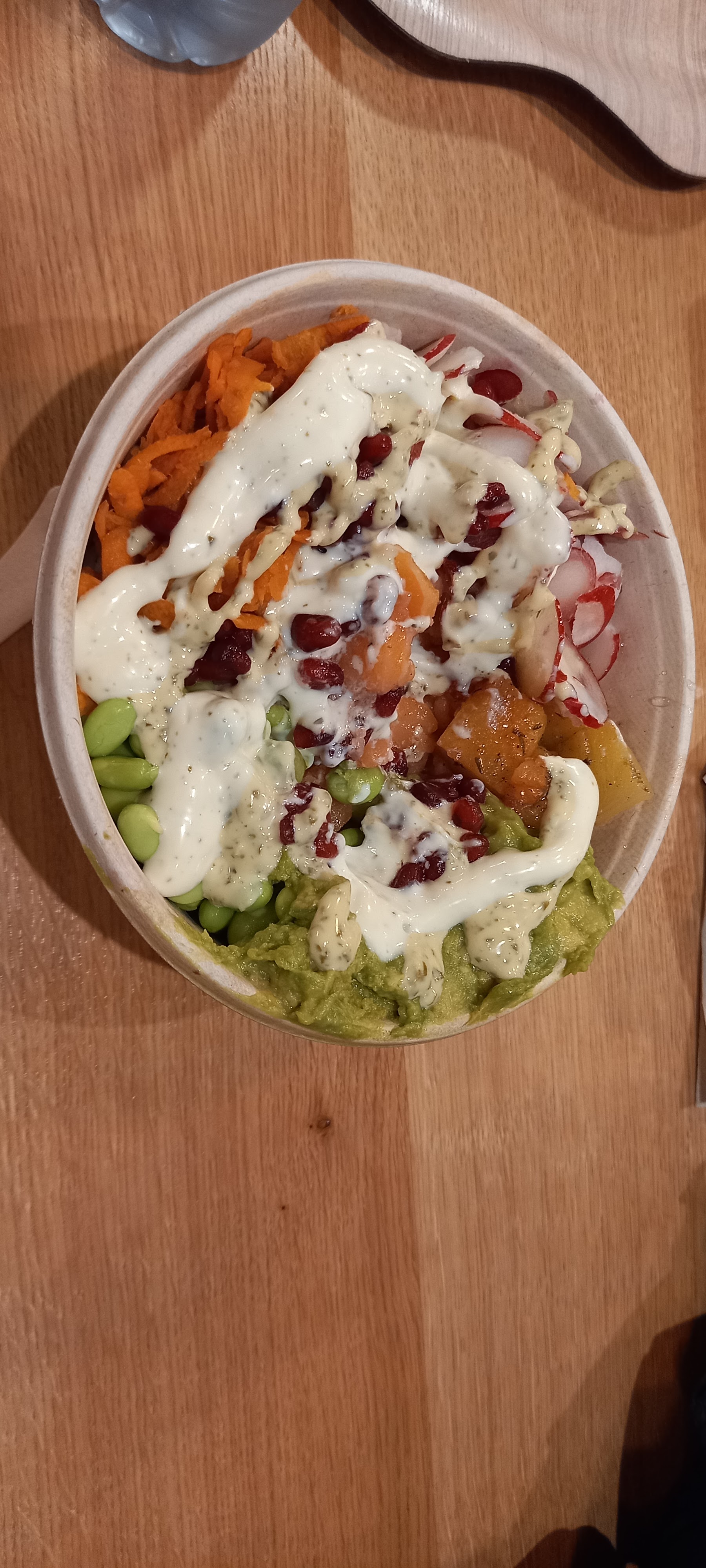Première fois que je mange un Bagel et je suis pas déçu avec la douceur du saumon pour la version scandinave.Un juste milieu d’utilisation des sauces et l’avocat qui fait la différence pour ma part. Sinon le Poke était bon mais je pense que la prochaine fois je prendrais deux Bagels haha