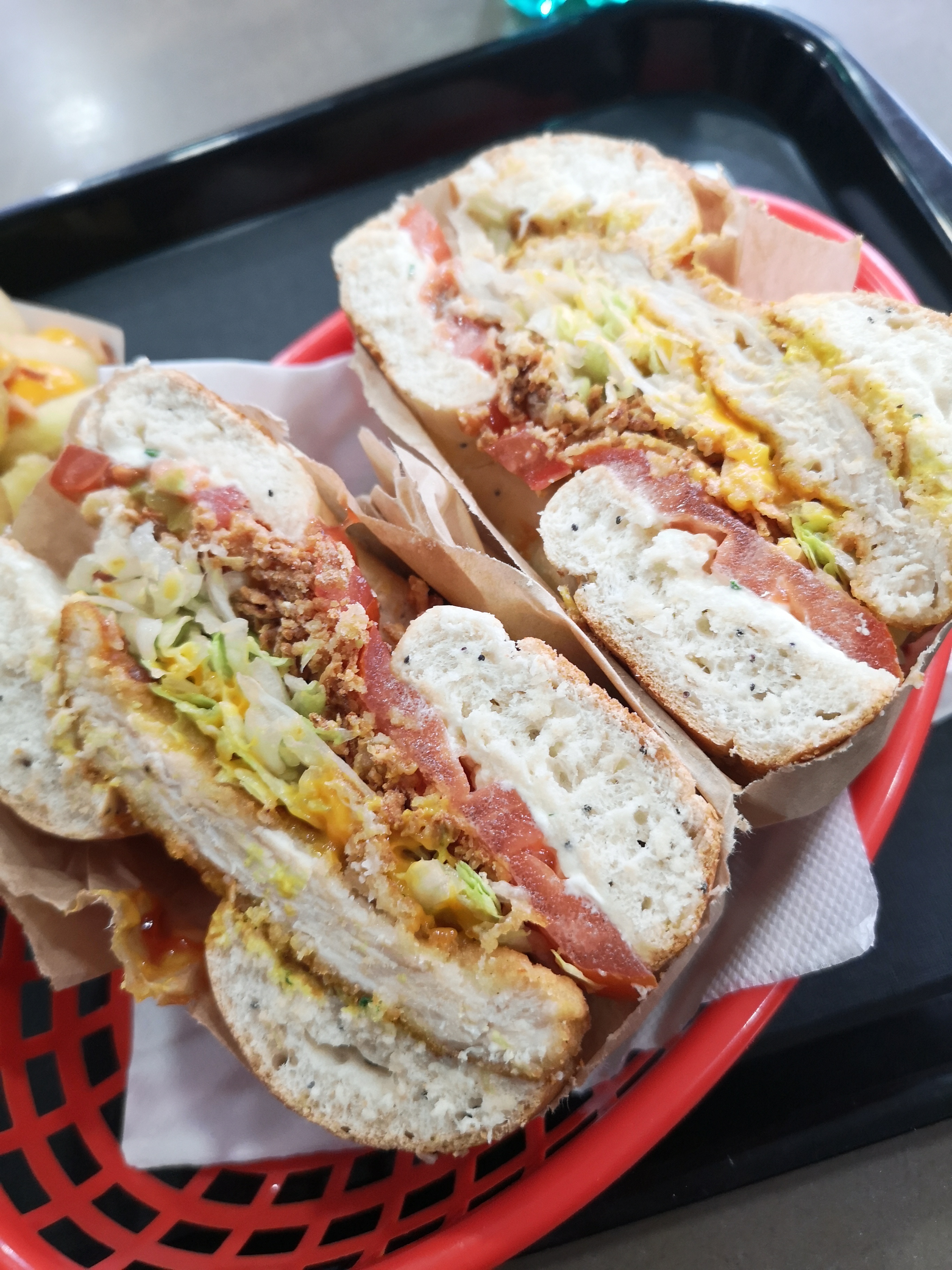 Découverte pour nous de passage au consulat. Excellent bagel (poulet halal) et frite aussi. Les quantités sont généreuses, le service est rapide et agréable rien à dire