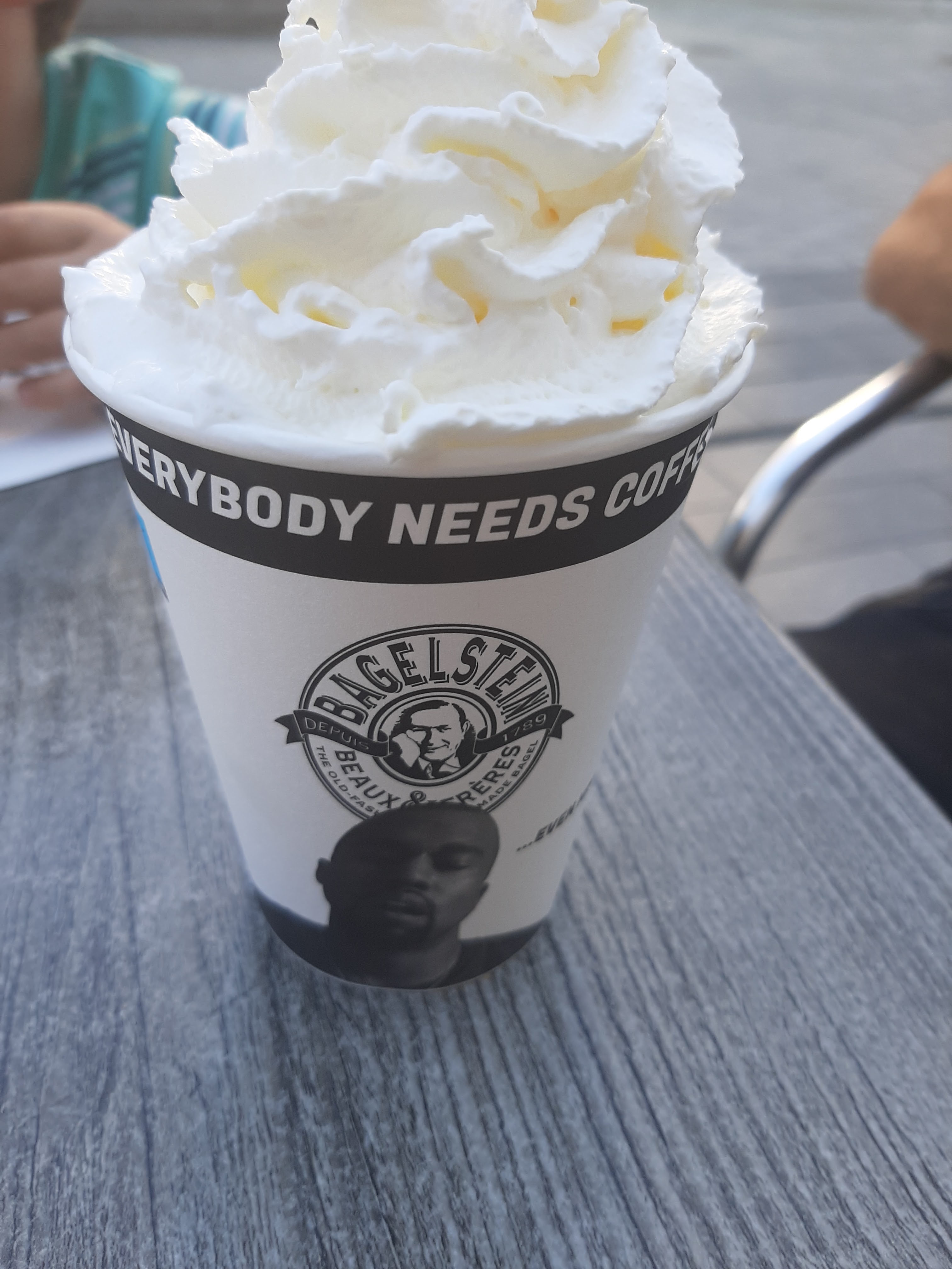 Leur bagel aux pépites de chocolat à la texture d'une viennoiserie ravie, le milkshake vanille vraiment pas bon ..ça ressemblait plus a du lait sans goût de vanille ni la texture attendue pour un vrai milkshake. J'ai également pris un muffin aux myrtilles. Toutes les myrtilles étaient au fond et ont dégouliné lorsque j'ai enlevé le papier....non franchement ...pas de quoi casser 3 pattes à un canard malgré une devanture qui appelle. La petite jeune bien gentille