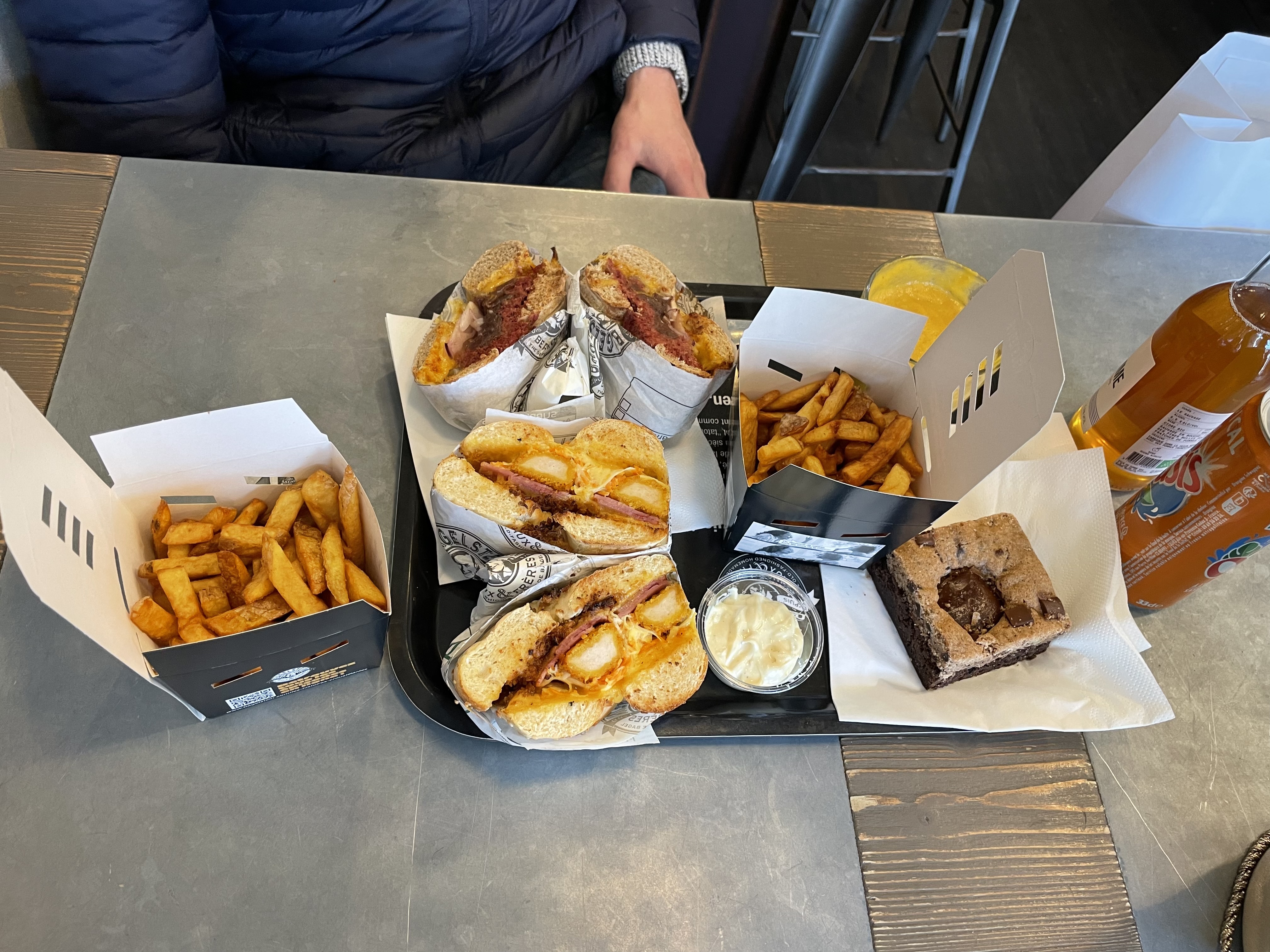 Nourriture correcte mais pas ouf ! Mais ma référence en matière de pastrami qui est l'institution Schwartz's Deli à Montréal doit être trop haute :-) C'est relativement cher je trouve par rapport au concept. Accueil sympathique et souriant de la part de la jeune femme qui semble être la plus jeune des deux présentes. Mais par contre, un gros travail doit être fait auprès du personnel en général pour qu'il n'évoque pas de façon très peu discrète leurs histoires personnelles dans le restaurant et encore moins quand c'est pour critiquer des clients !!!