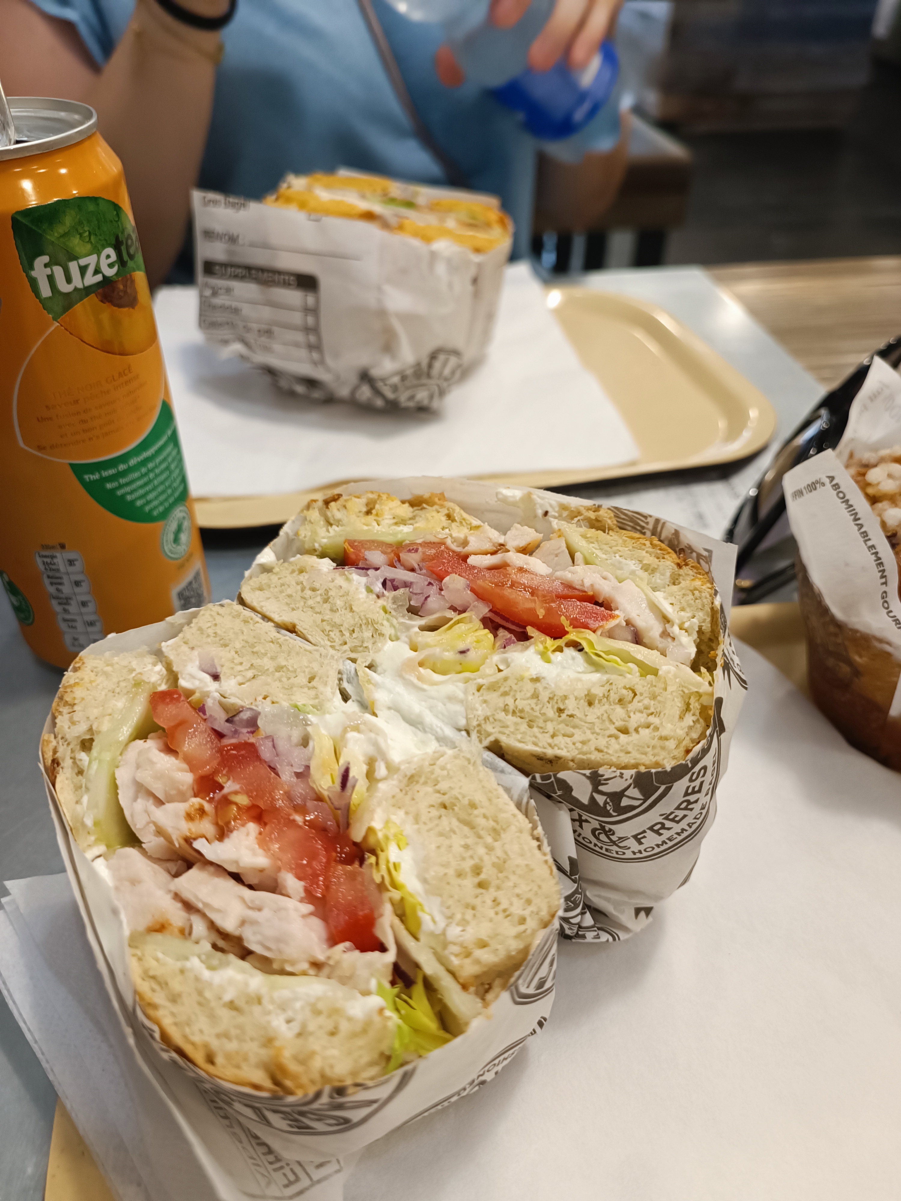 Très bon, mais déçue car pour un bagel plus gros a 2 euros de plus la quantité restait la même que pour un normal.