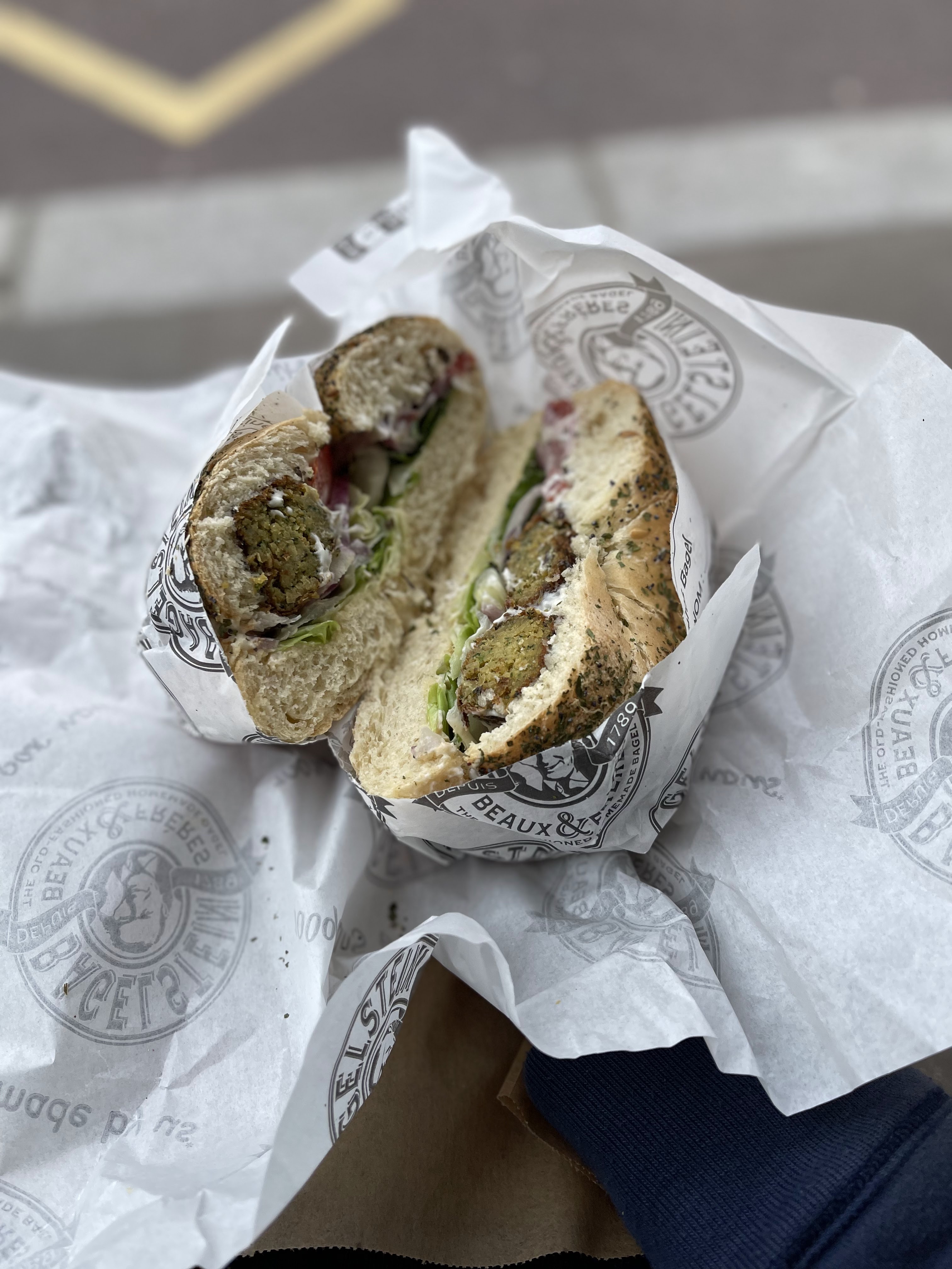 J'ai essayé le bagel végétalien Joséphine. C'était la première fois que je mangeais du falafel et du houmous dans un bagel.