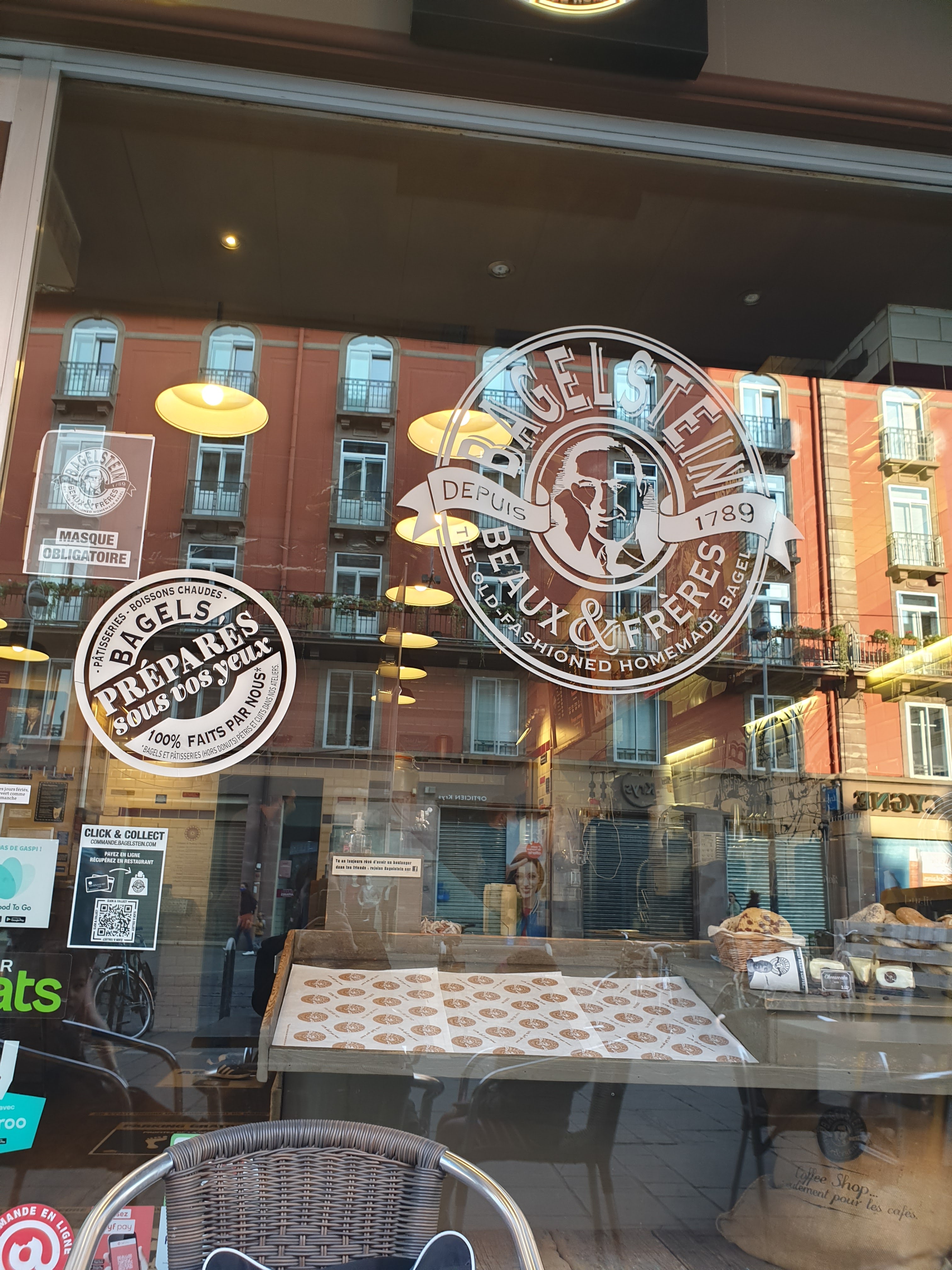 Les bagels sont un peu petits je trouve. Un peu cher pour ce que c'est. Wi-fi gratuit ;-) Les vraies fausses citations prêtent à sourire. La playlist musique tourne en boucle ça peut lasser à force. Petite terrasse, toujours à l'abri de la pluie ;-) du soleil l'après-midi à partir de mars. Je recommande.