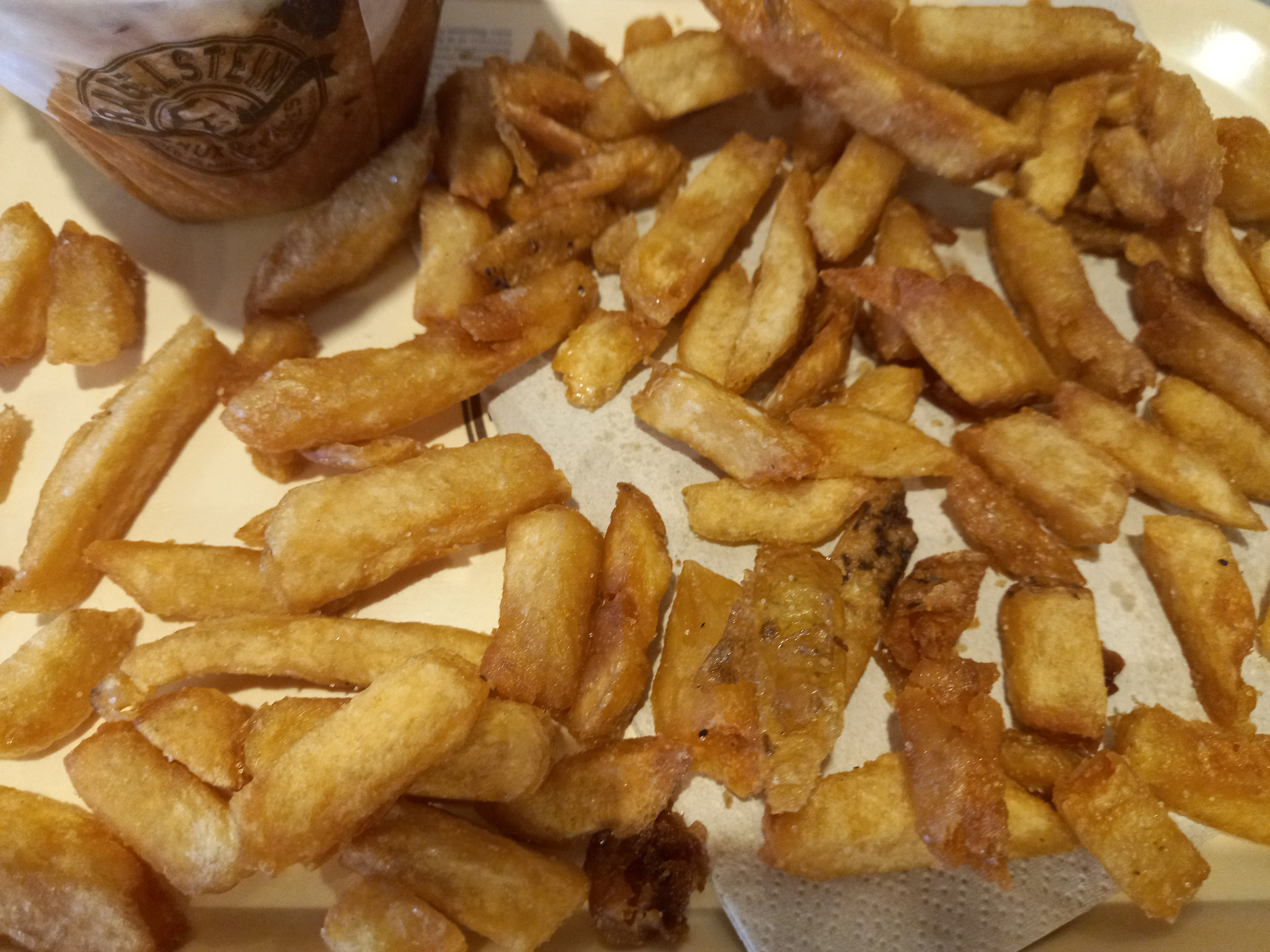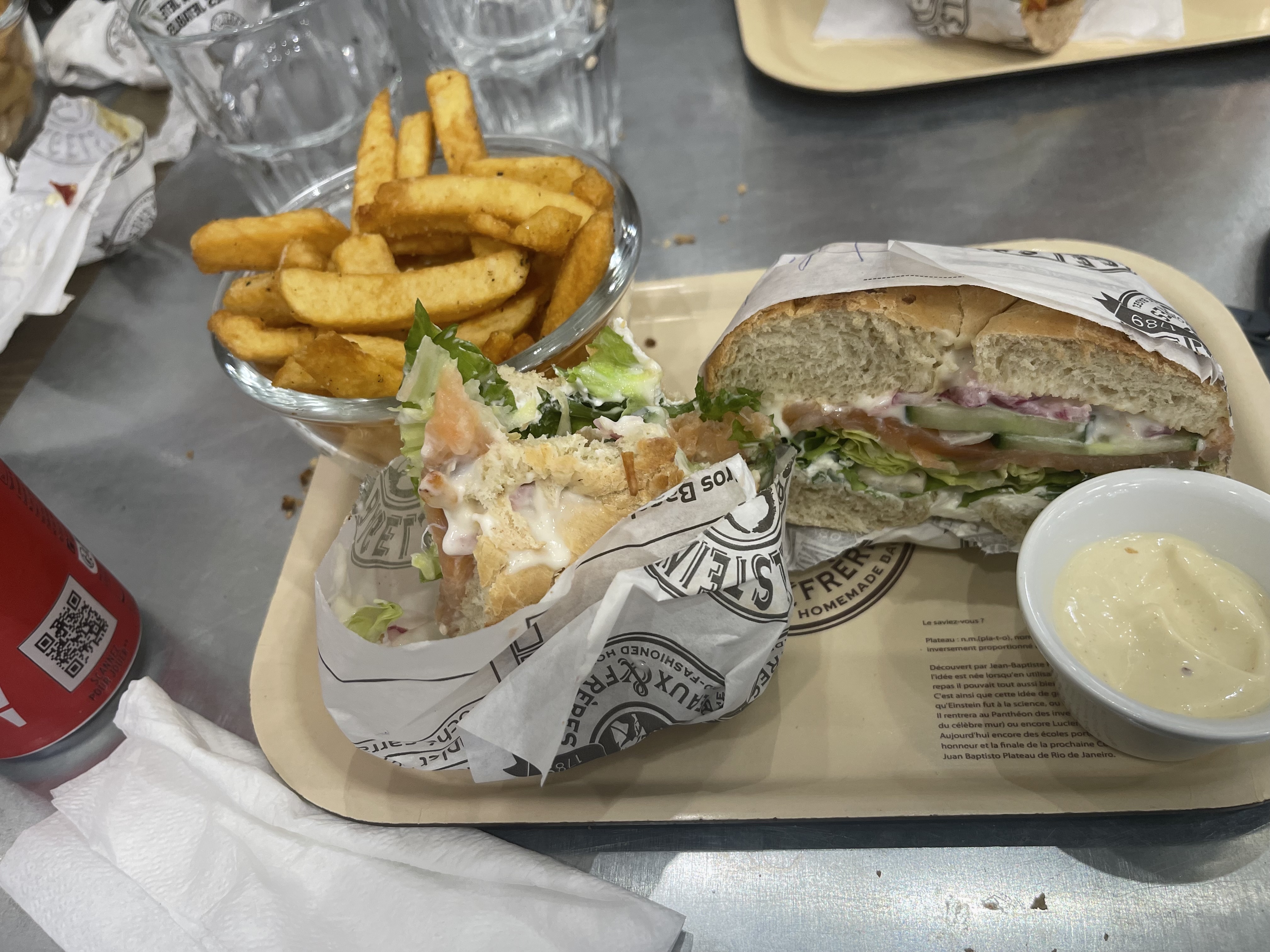 Les frites sont bonnes, mais les bagels sont moyens. Pour le coup ce midi il n’y avait pas de frites et le bagel était froid, le pain n’était même pas toasté.