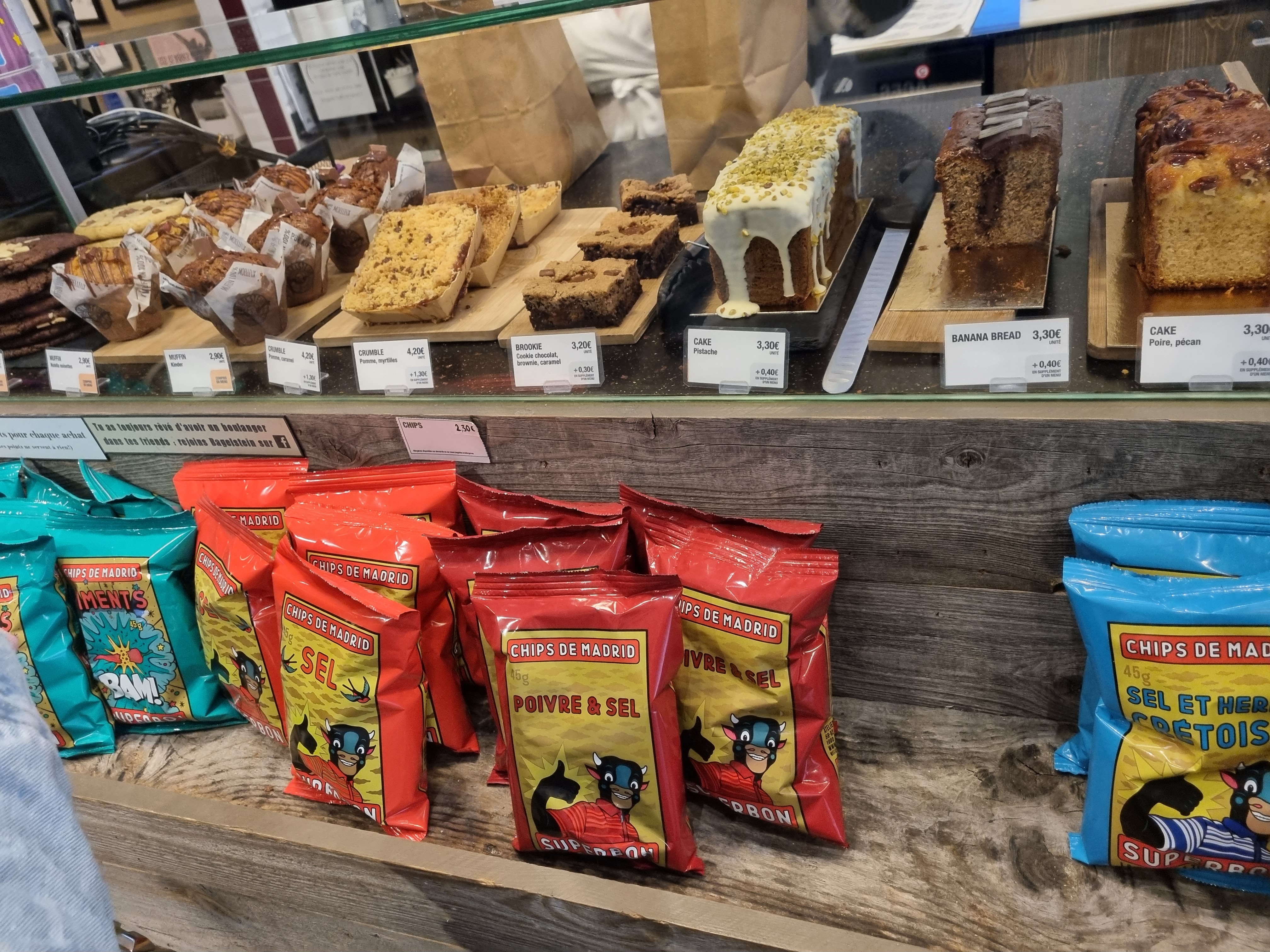 Bagel de grande qualité avec du choix ! Vraiment très bon ! Crumble plutôt bon aussi, de meme pour les muffins. En revanche la qualité du café pour les ousechos est à revoir…. Cela gâche un peu le goût de la boisson…