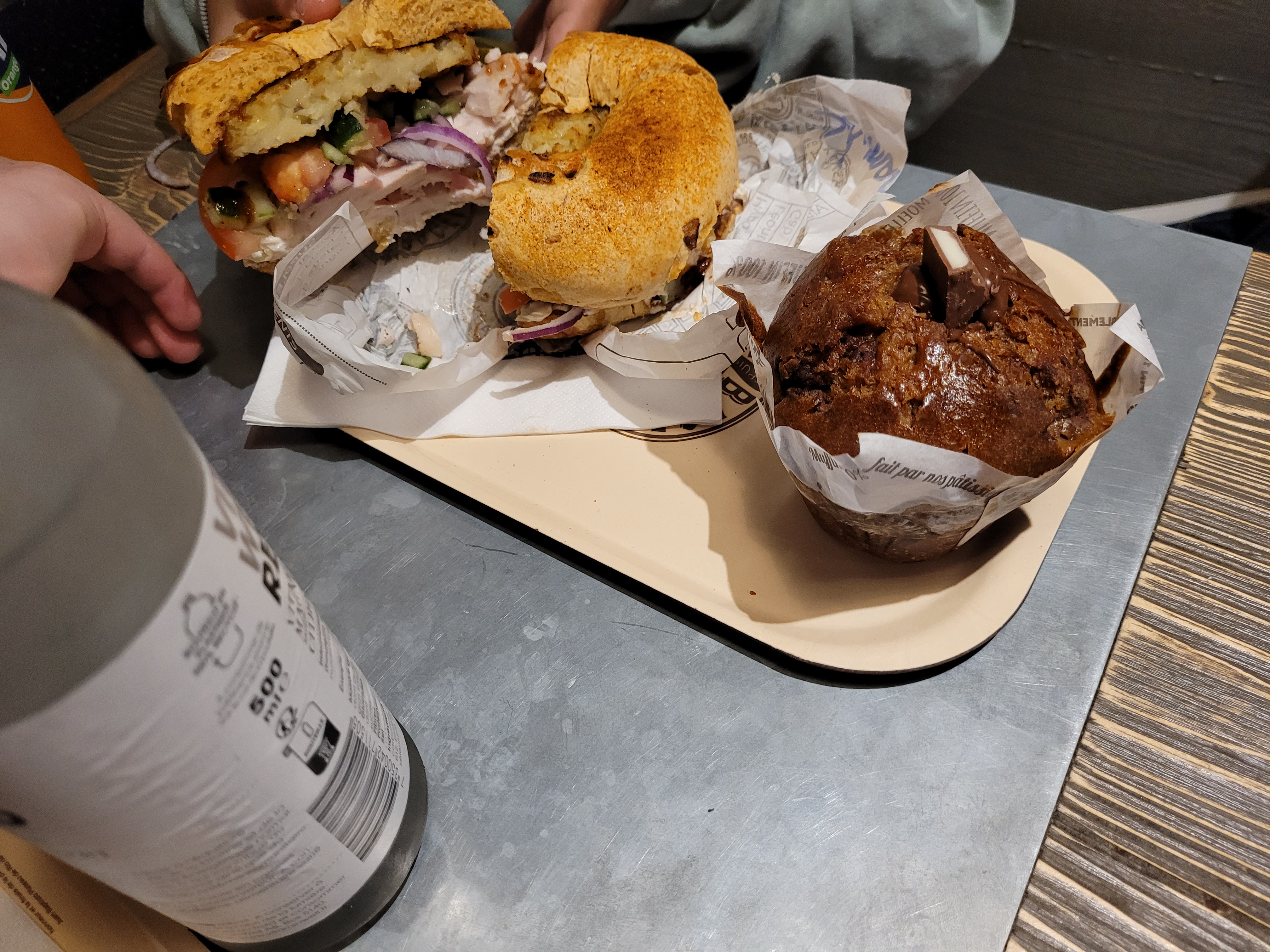 Mec (parce qu’on est devenu proche au moment où tu m’as tutoyé), c’est HARD ! tu m’as mis la moitié du contenu du bagel dans le papier ! Heureusement que j’ai pris sur place ça limitait la casse. Pour les prochains clients applique-toi un peu plus c’était un vrai carnage. Sinon pour 14 balles le bagel + bouteille d’eau les portions sont petites, j'ai eu faim en partant, finalement j'aurais peut être dû manger le papier. Je te laisse au moins le service du plateau, je ne fais jamais ça mais là faut vraiment que tu te rendes compte de ton œuvre.