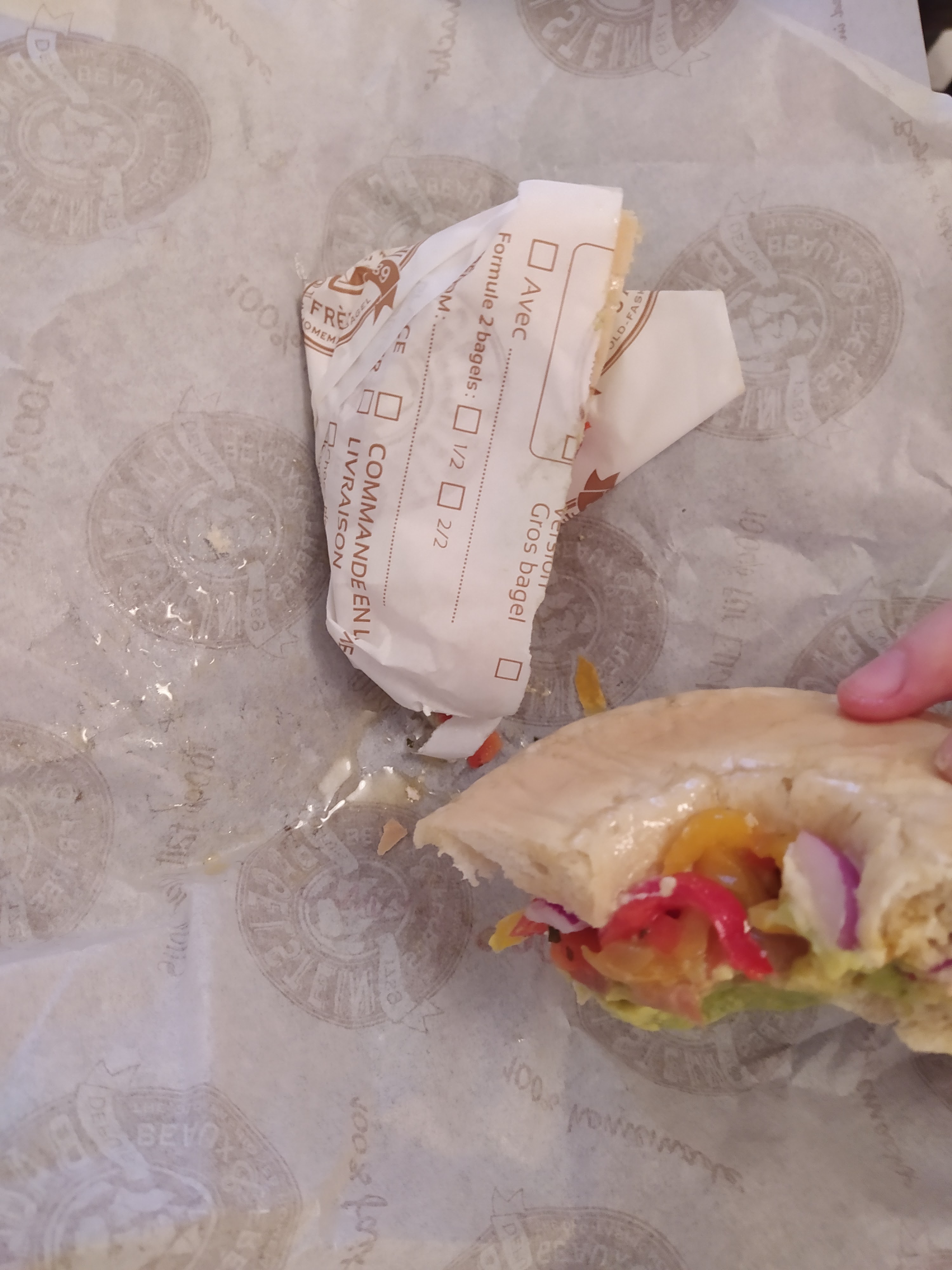 Nous avons commandé sur uber eat, bagel bien fourni, crudités frais. Tout était délicieux. Seul petit point négatif, le pain était soit un peu trop compact soit un peu sec, mais mangeable. Nous nous sommes quand même régalés ! Nous avons commandé une seule fois, je modifierais mon message au fil des commandes/ des fois où nous irons sur place 😊