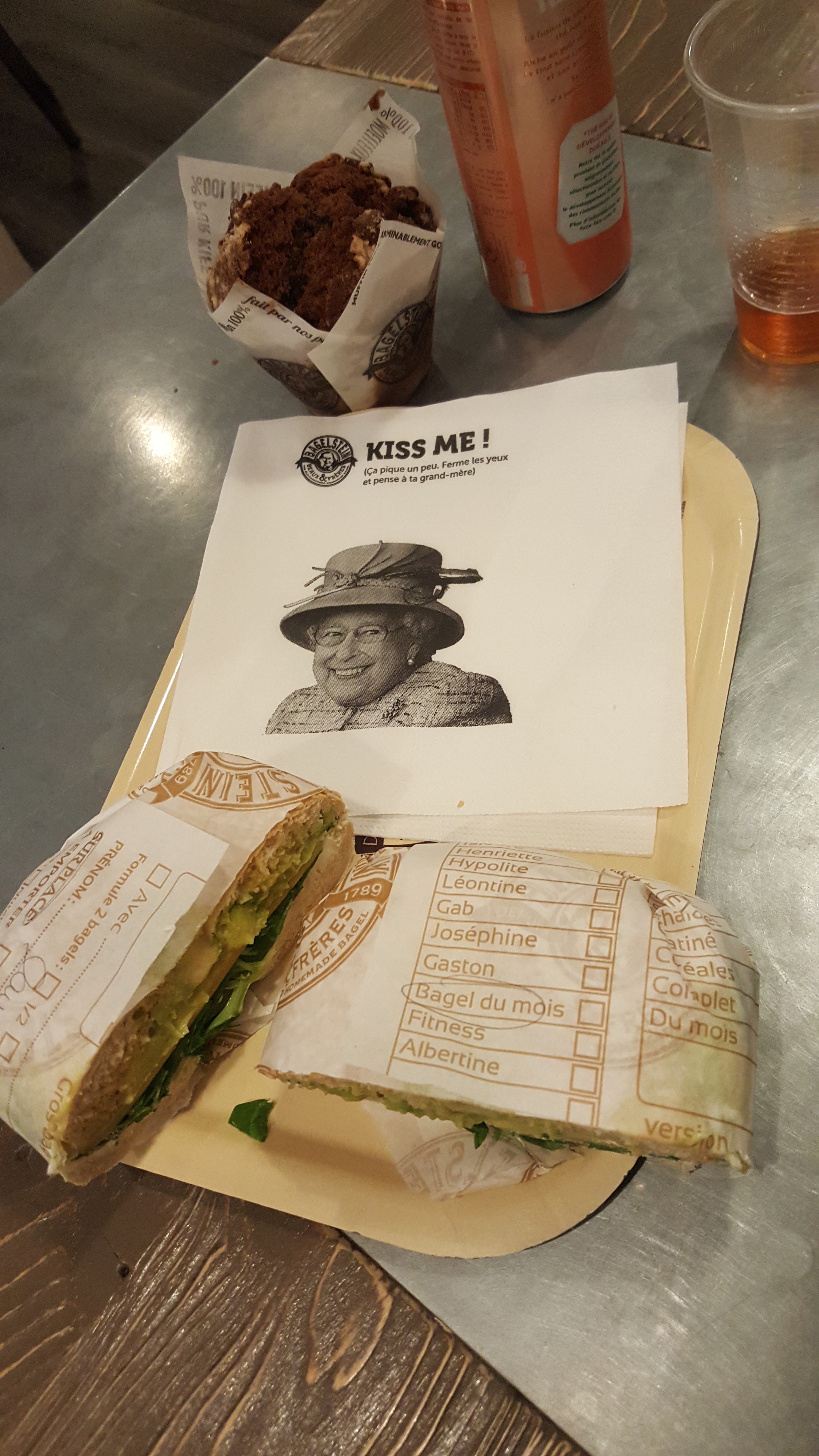 L'idée est bonne. Légèrement pompée sur les Starbucks, on vous demande votre prénom. Ça fait plus hipster! Les bagels sont bons mais ne valent pas la somme deboursée : 30€ à 2 pour deux bagels, un paquet de chips, une tartelette et 2 boissons. Tant qu'à y être, préférez Subway.