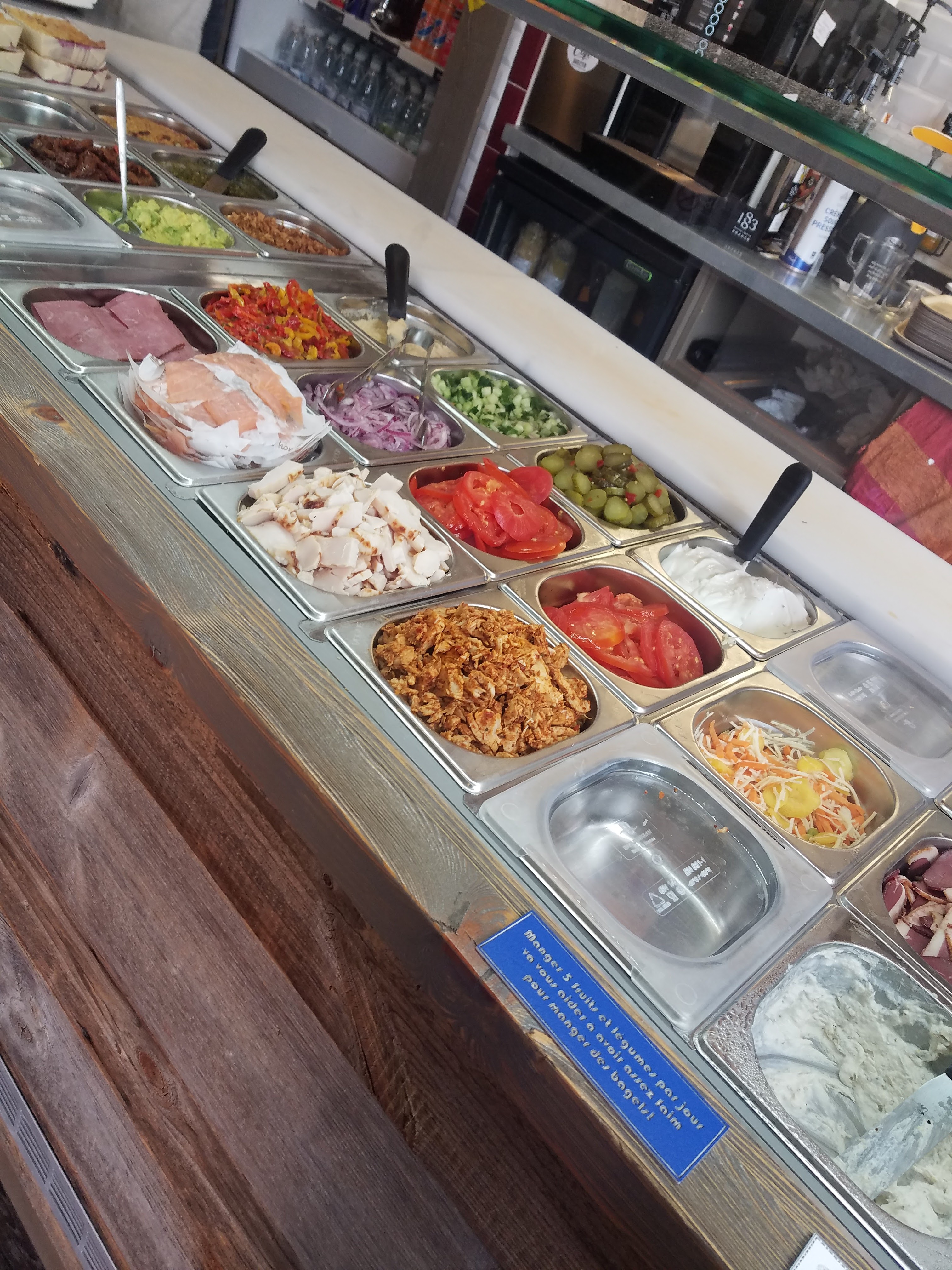 Personnel agréable. Différents bagels pour faire ton menus salés, sucrés. Petit encas bien apprécié.