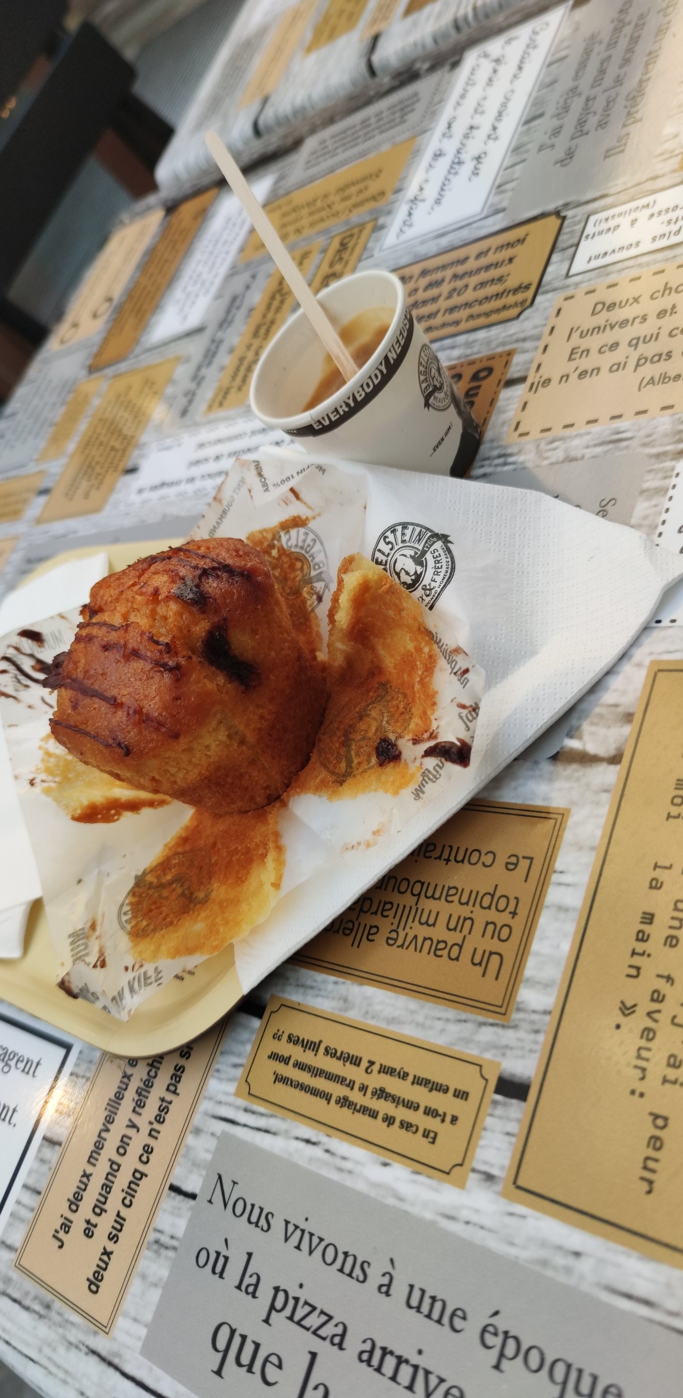 j’ai fait un premier date dans ce bagelstein et grâce à la bonne humeur des serveurs et des serveuses mon petit date s’est passé à merveille ☺️ je recommande cet endroit si vous voulez passer un agréable moment 😁