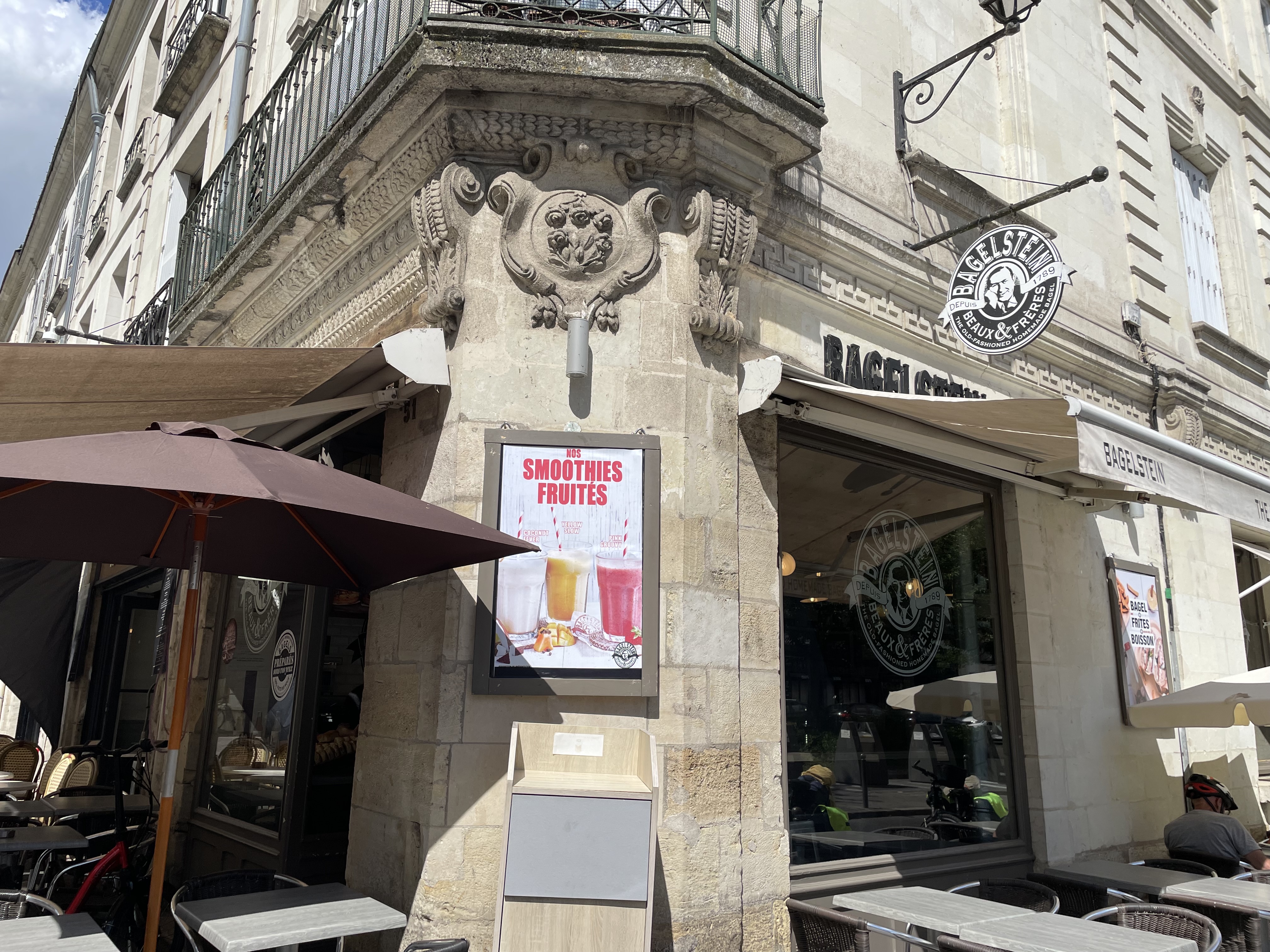 Bagelstein à l'entrée du vieux Tours. Recettes de l'enseigne, des bagels bien frais et bien garnis. Service sympathique. Je recommande