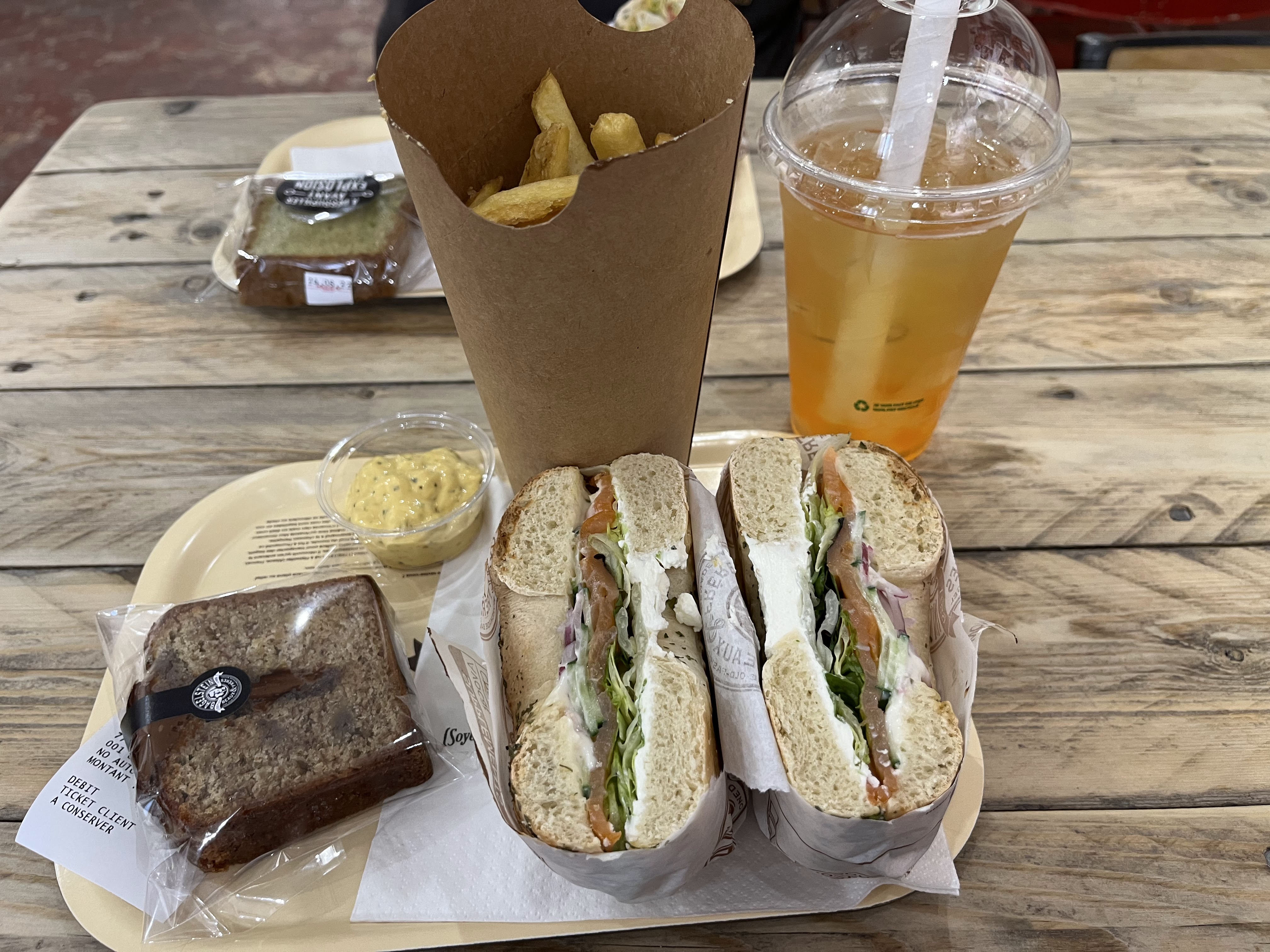Bonne ambiance,convivial,bon accueil et les bagels sont frais.les salades et desserts sont également bons. On reviendra avec plaisir tester les bagels sucrés avec les enfants