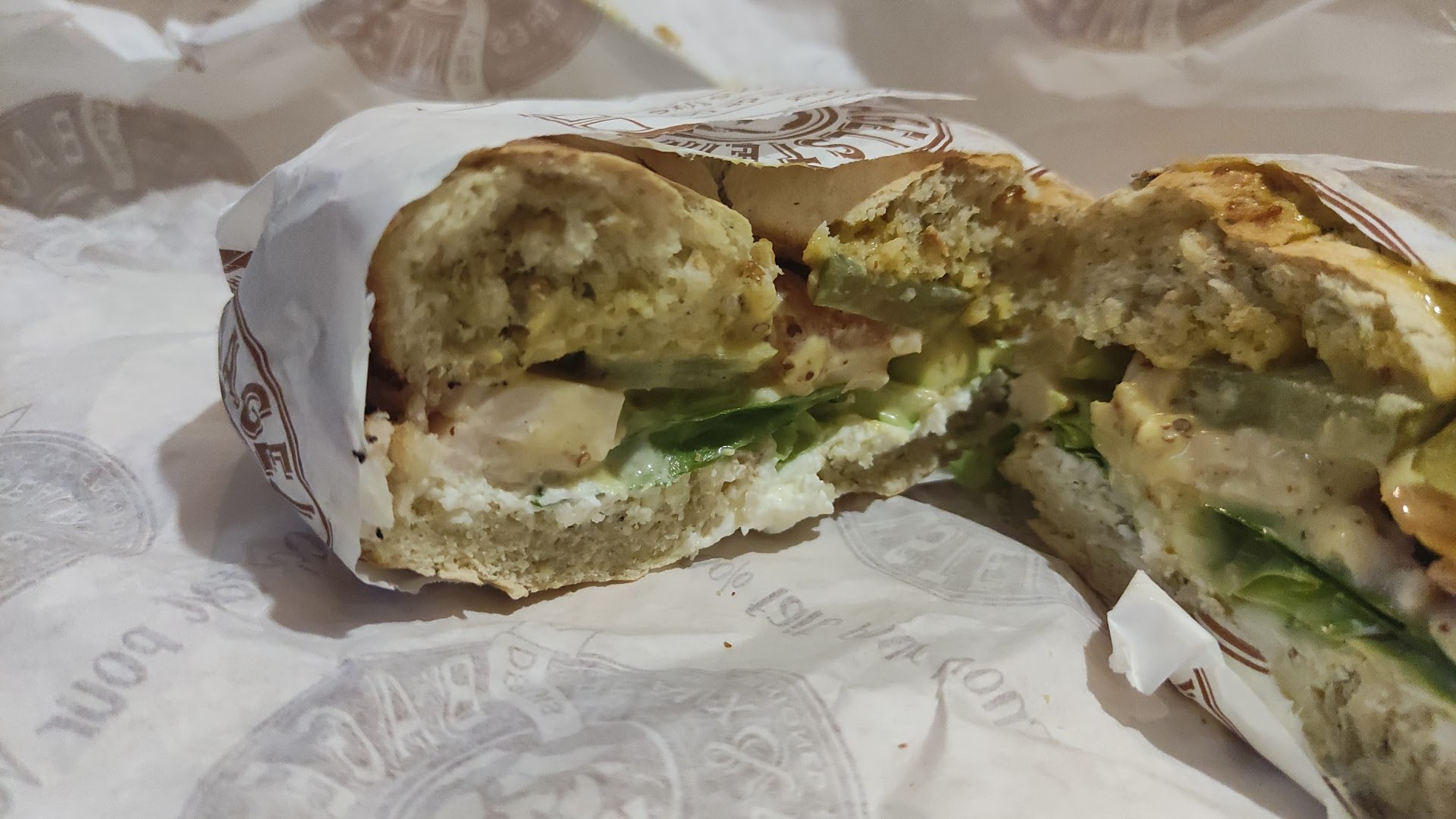 Très déçu. Pain pas du jour, qui s'émiette totalement (décongelé ?) De plus, il me semble que le pain du bagel doit être chauffé... La pas du tout... Résultat pâteux en bouche assuré. Je ne recommande pas