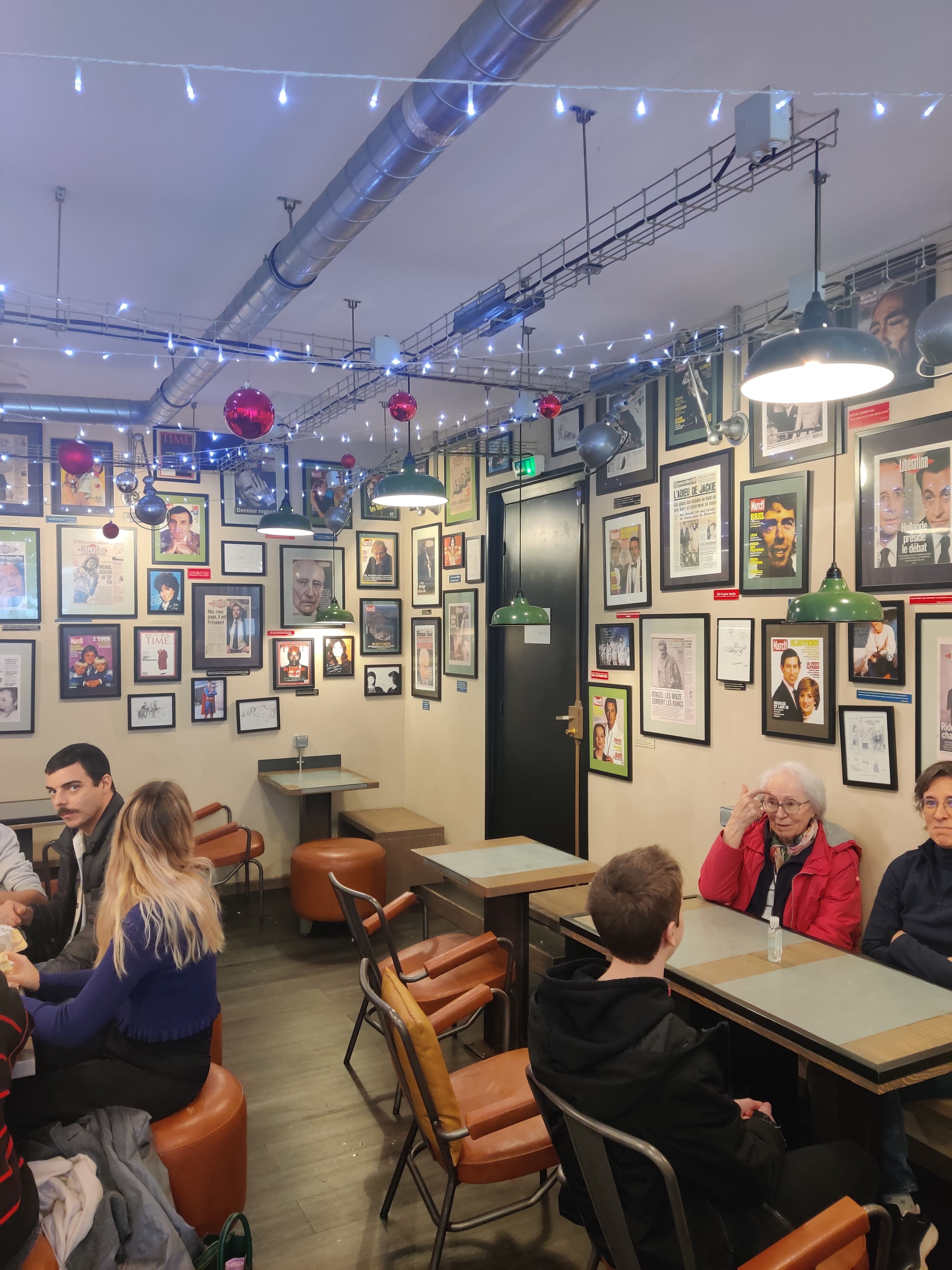 Moi j'ai vraiment adoré. Côté cuisine, c'est très bon, ça a du goût. C'est personnalisable. Le prix est correct pour la qualité. Le personnel est super gentil et vraiment à votre écoute. Et la déco, c'est super. Tout un tas de cadres avec des pages principales sur l'actualité et les peoples, tout cela mêlés de petits dictons humoristiques qui font rappeler que si la vie est parfois grave et sérieuse, il faut savoir en rire. Style vintage. Bravo et surtout merci pour ce bon moment.