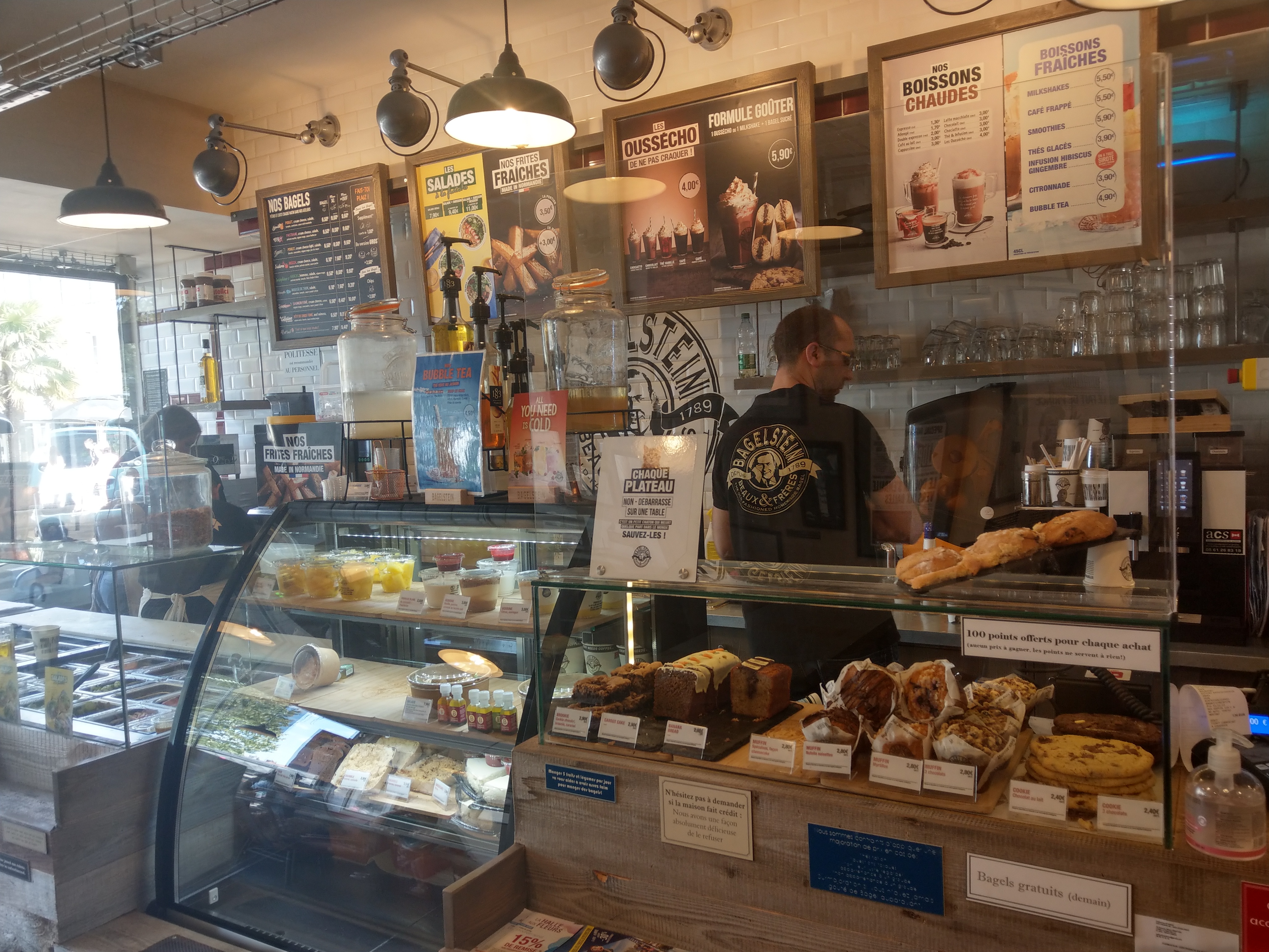 le personnel est sympathique. Les bagels sont très bon. La boutique est bien placée. Seul bémol : le service est assez long.