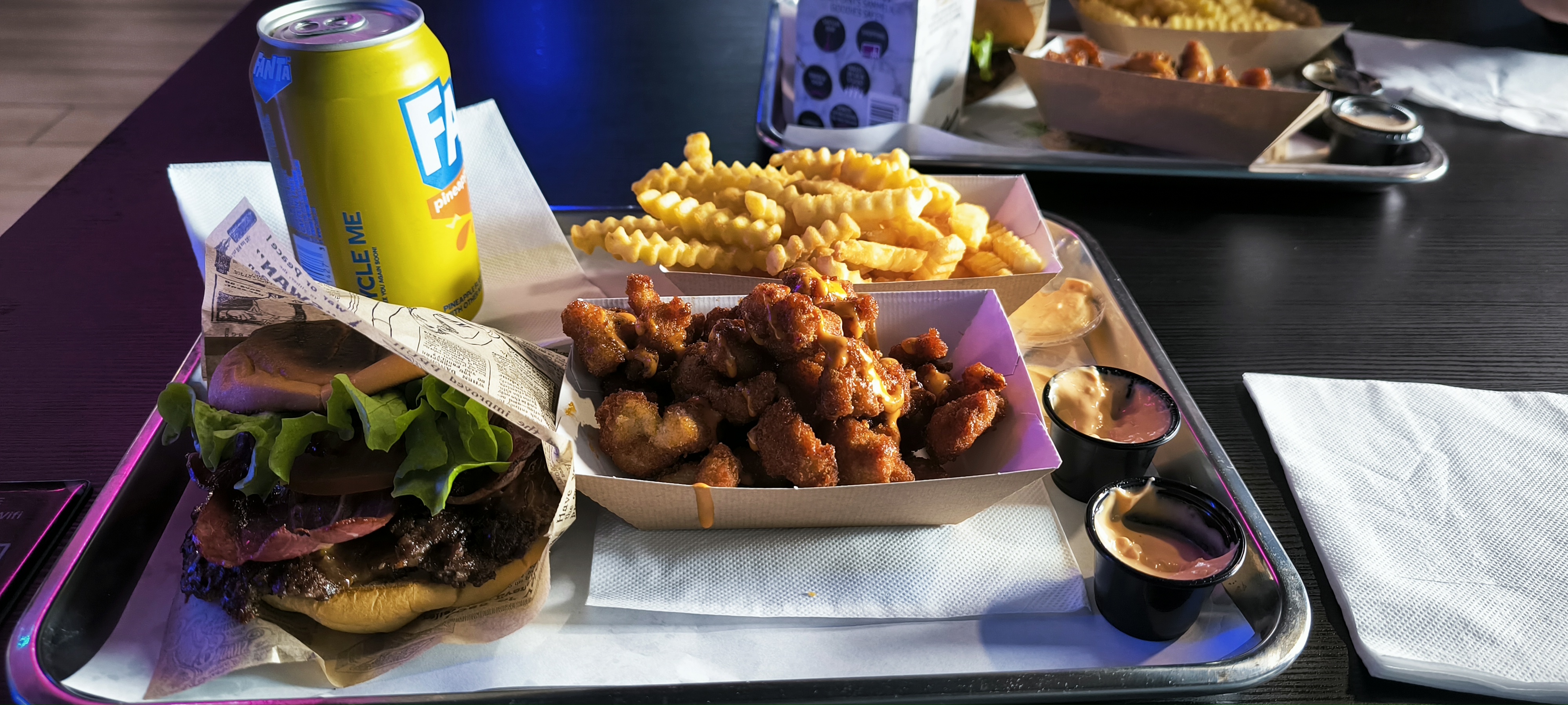 Très beau restaurant, ambiance us et jeux vidéos (j'ai adoré la fresque). Les burgers sont bons, les starters également. Les sauces originales sont très bonne également, les ingredients sont frais, de la street food pour pas très cher. Petit bémol pour les sandwichs qui sont petit, pour moi en tout cas il m'en a fallu deux. Le service était très bien, je reviendrai 👍