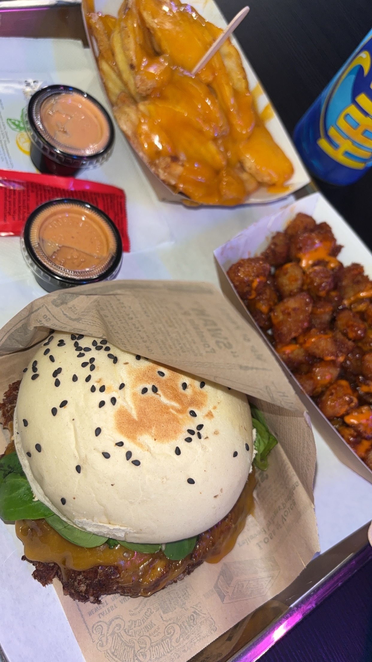 Les burgers étaient excellent le dynamite c'est une pépite ! Le choix de boisson est incroyable je recommande pleinement! Ce sont des burgers avec des goûts qu'on ne retrouve pas partout! Ils sont de qualité et super originaux