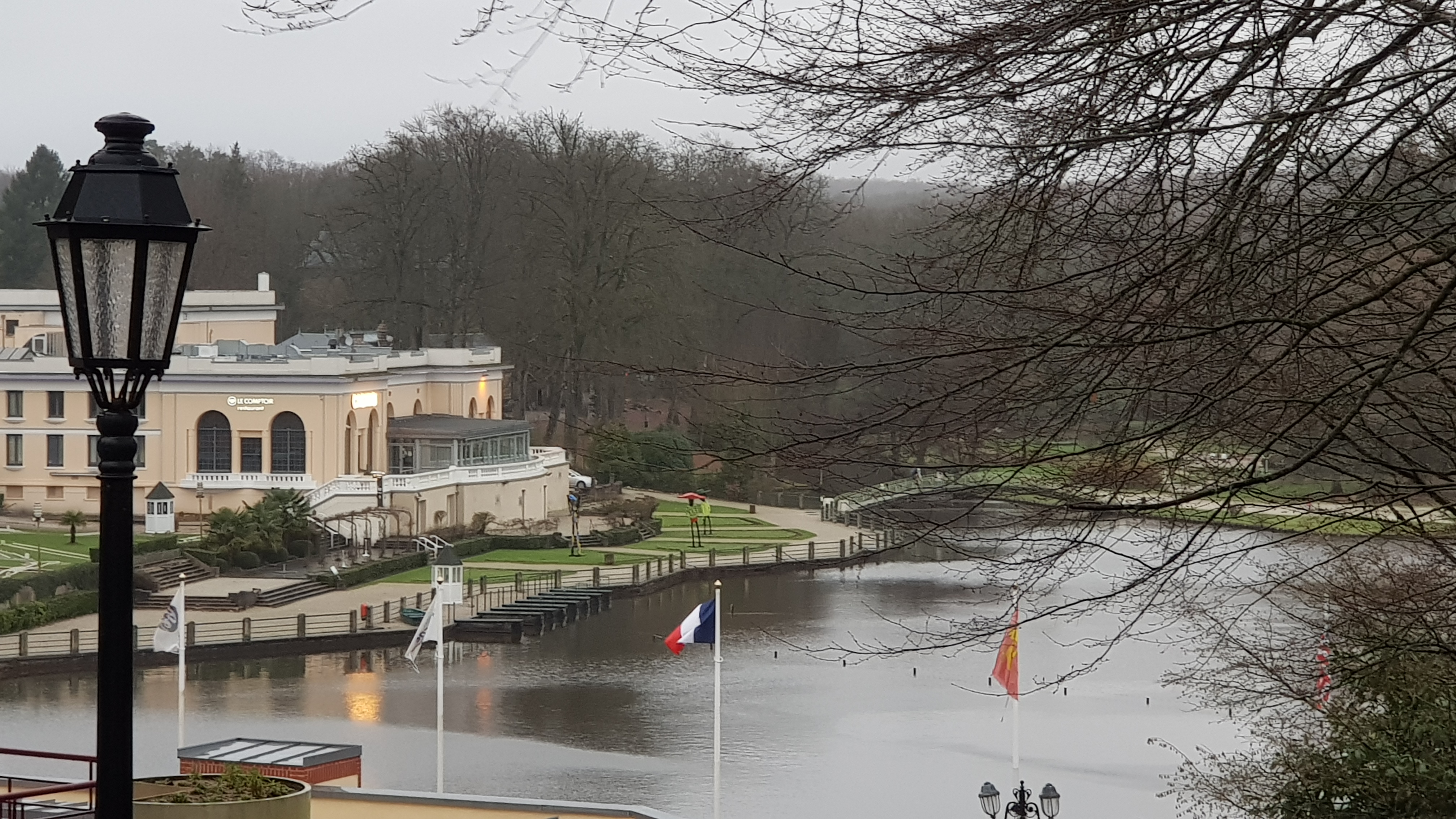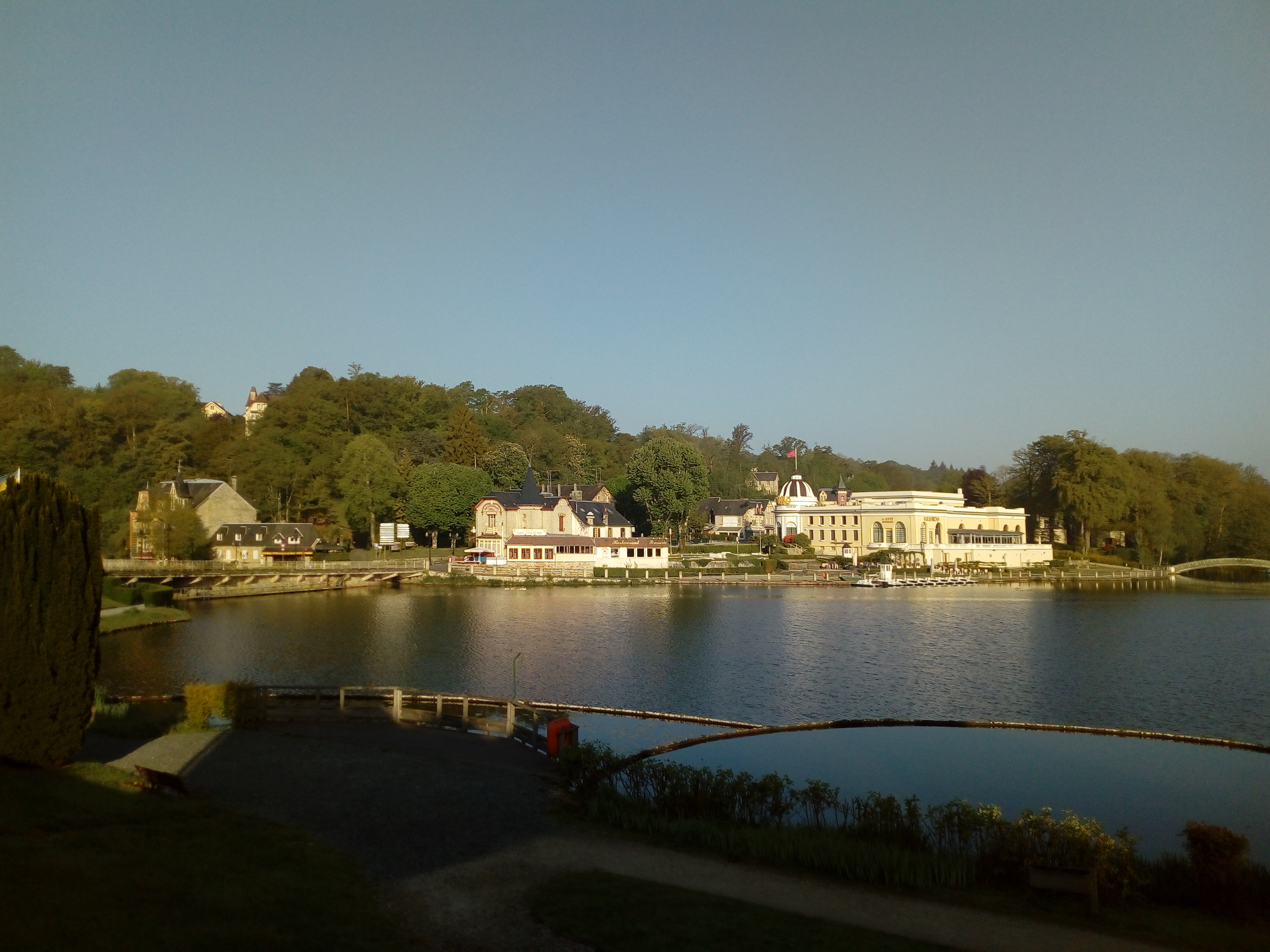 station thermale dans un environnement paysager entourant un lac bien entretenu et centre ville vivant et commerces ouverts le dimanche