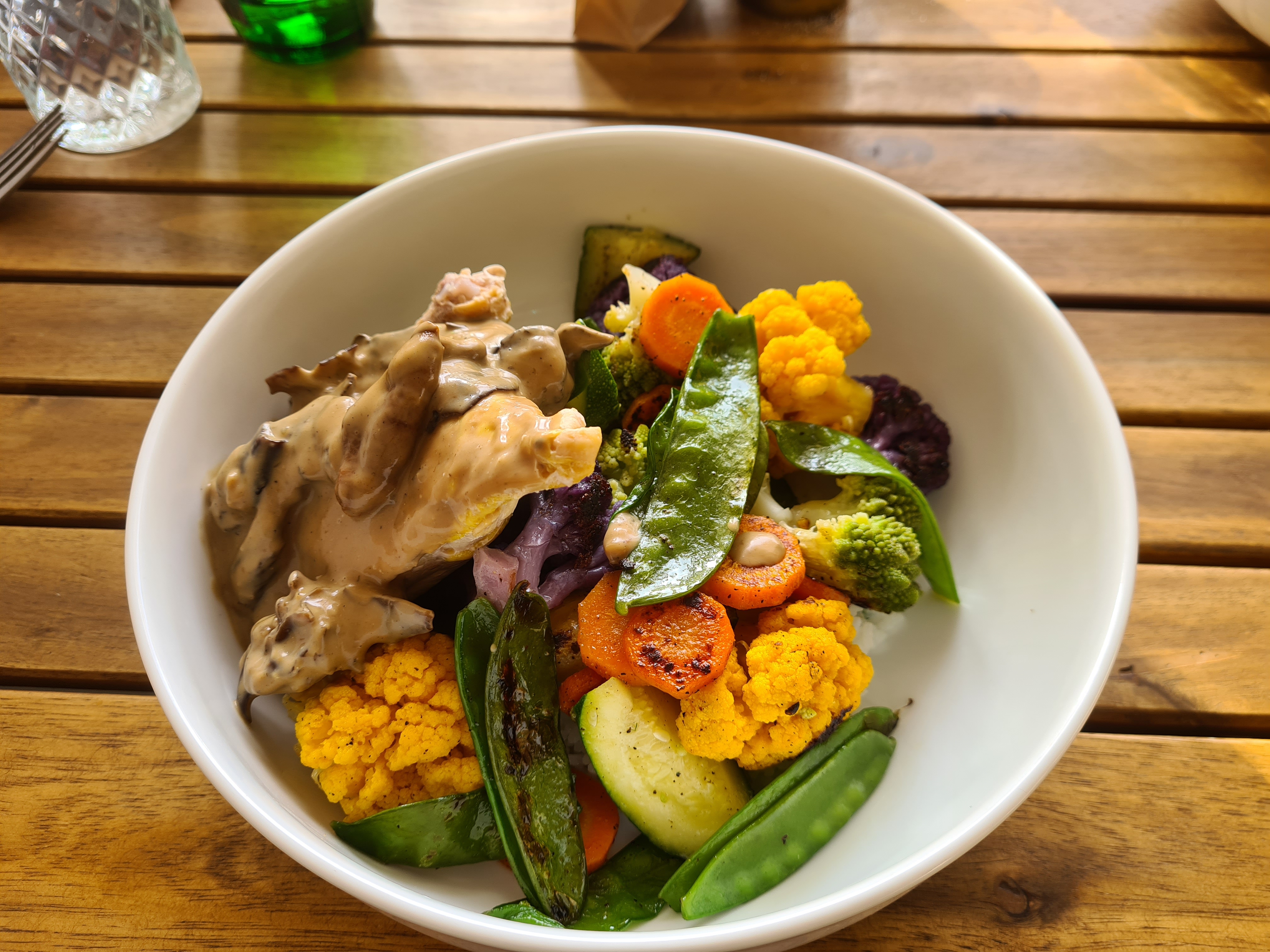 Bon moment dans le bar à salade BAIA Possibilité de commander à la carte pour des plats chauds Volaille forestière (quelques ajustements à prévoir sur les cuissons) / Polenta Bourguignon (très bien)