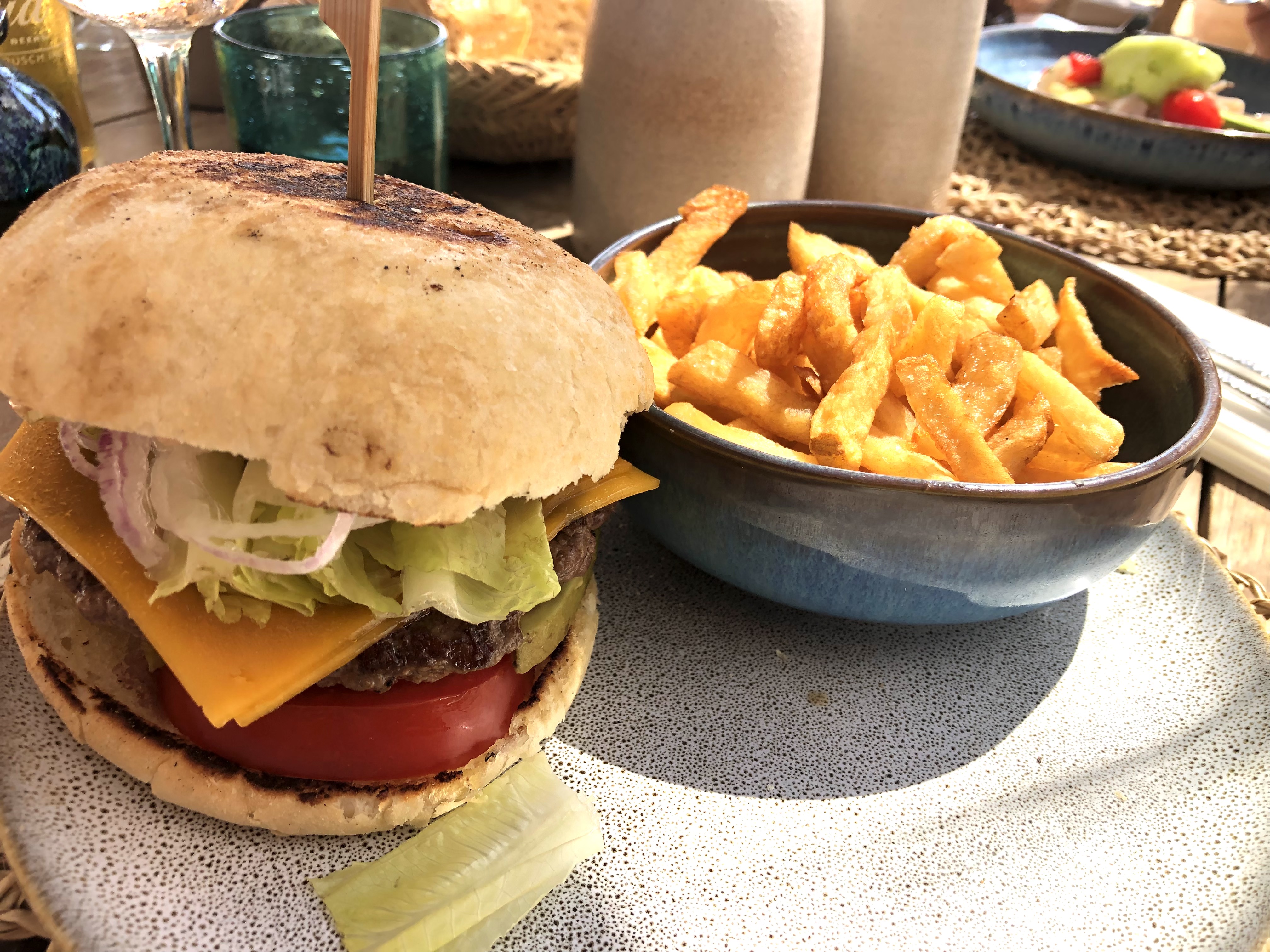 Nous avons passé une superbe déjeuner ensoleillé sur la terrasse la semaine dernière. Nous avons pris un bouteille de rosé les amoureux, un burger et des scampis en plat. C'était très bon et le service au top