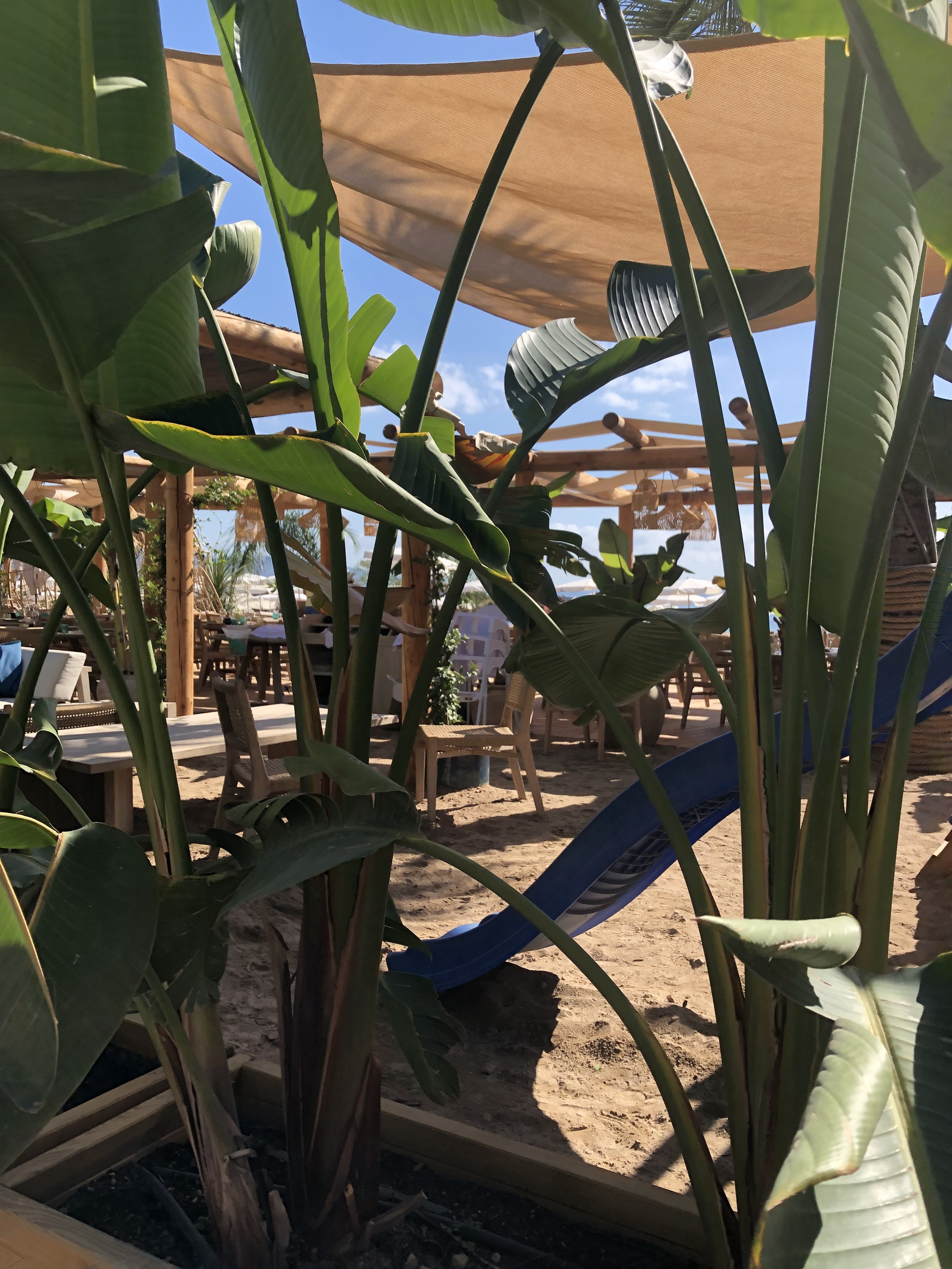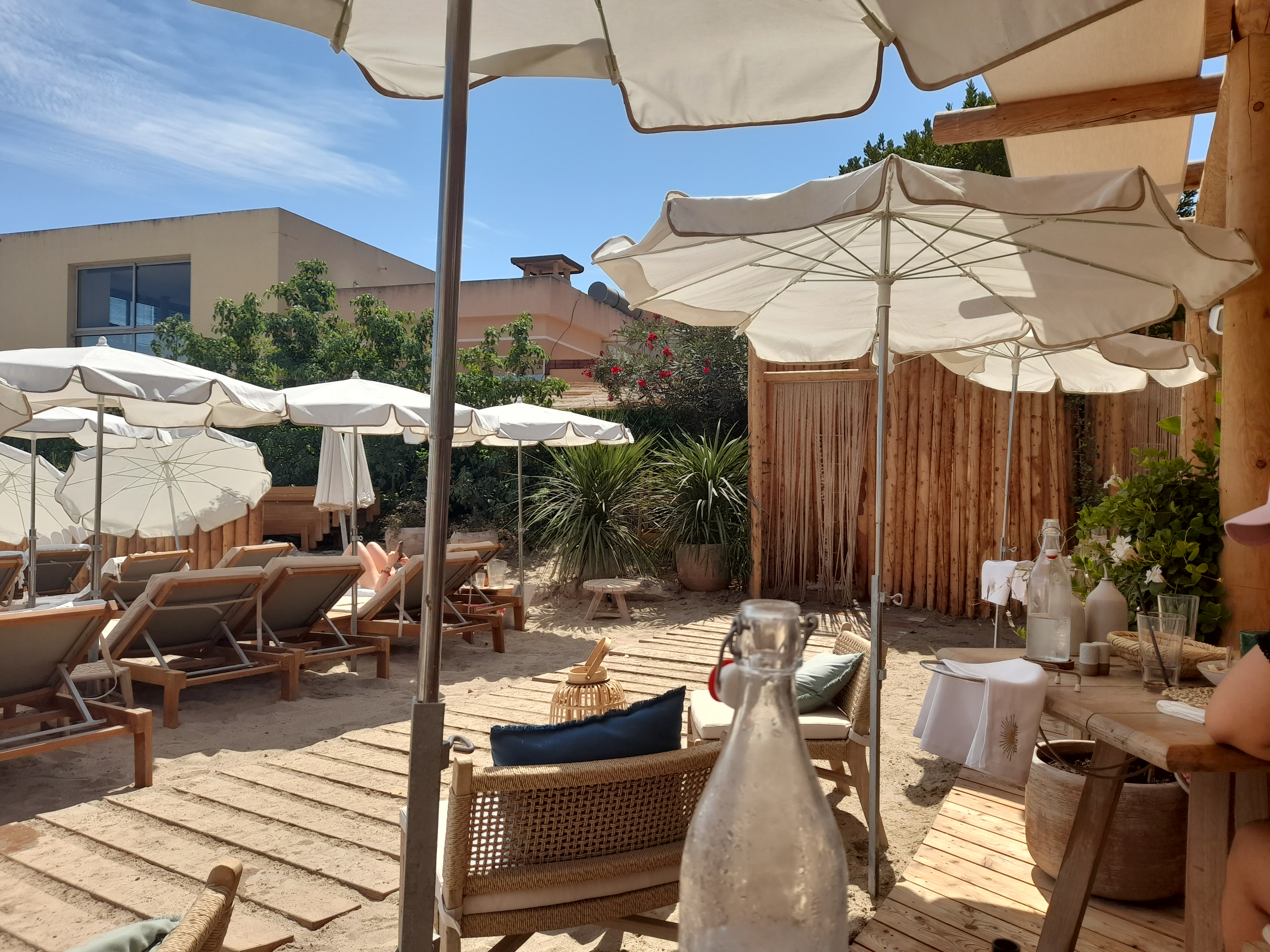 Magnifique établissement, décoration impeccable, originale, de bon ton ! Il est certains que seuls les habitués y sont les bienvenus ! Nous étions passés le matin même pour une réservation : plus aucune place ni en plage privée, ni au restaurant ( au final heureusement vu la promiscuité des transats). Nous décidons toutefois d’aller le midi y déguster un cocktail. Placés par l’agent de sécurité et plusieurs dizaine de minutes plus tard servis par le même agent de sécurité qui avait dû estimer que nous attendions déjà depuis trop longtemps. Une organisation qui se veut sans conteste irréprochable mais laisse à désirer ! L’observation que nous avons pu mener durant notre temps d’attente donne à voir une méconnaissance par les serveurs des différents emplacements, une rigidité sans doute liée au stress qui gâche l’ambiance et le climat ambiant Dommage