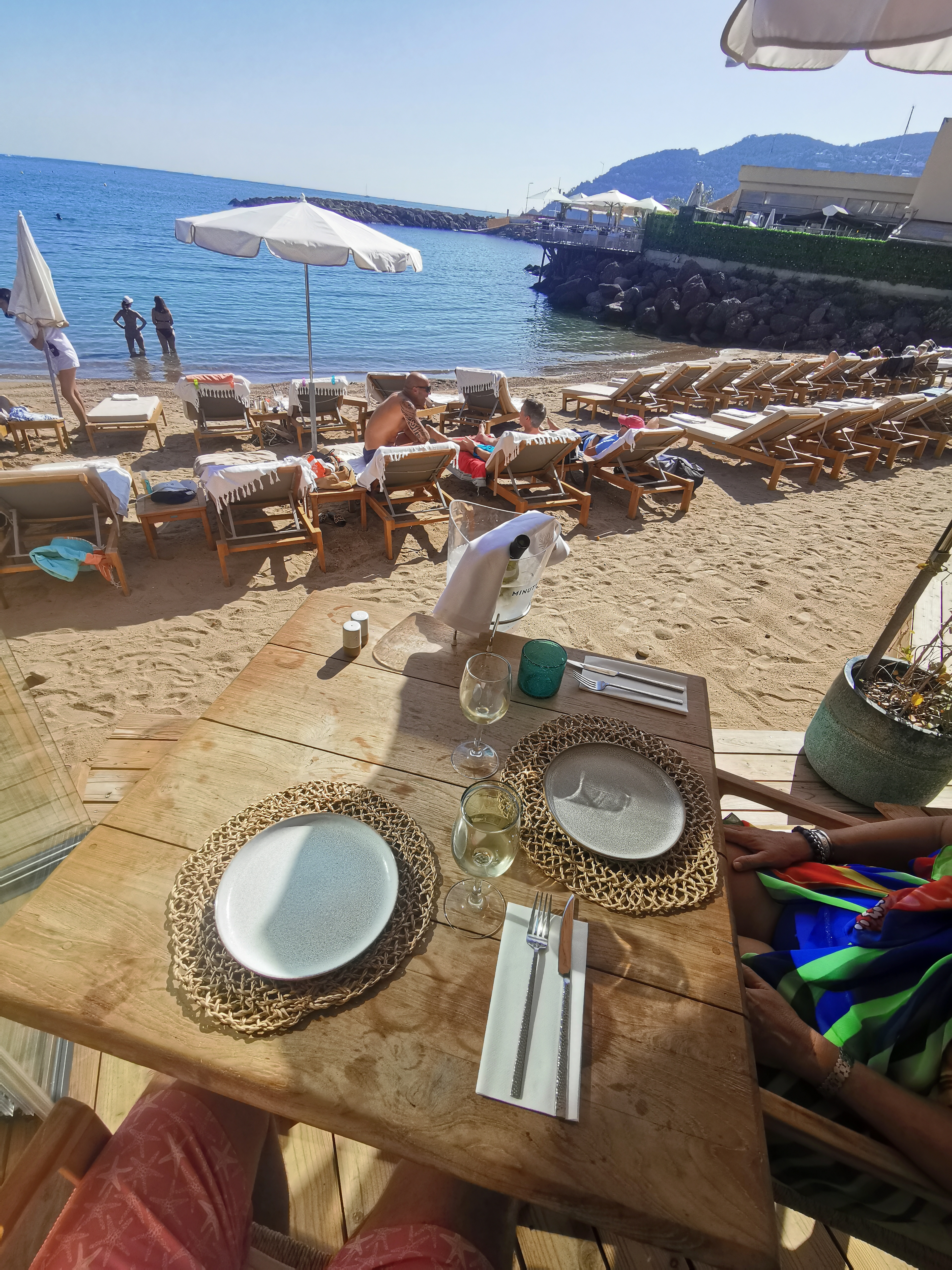 Nous sommes venus à 4 adultes et 2 enfants. En arrivant un service de voiturier avec une dépose en Golfette juste devant la plage, l’après-midi commence bien :) On passe à table et on s’est régalés. Poulpes au chorizo, salades et cote de veau à la milanaise, tout était délicieux ! Un coin super frais à l’ombre dans le restaurant hyper appréciable avec cette chaleur. Transat loué avec serviettes directement, bonne musique et aire de jeux pour les enfants. Ils avaient ouverts à peine 3 jours avant et c’était franchement super donc je recommande ! Ça change des plages de la Croisette et ça fait du bien. On reviendra, il paraît que le soir c’est encore une autre ambiance donc à bientôt !!!